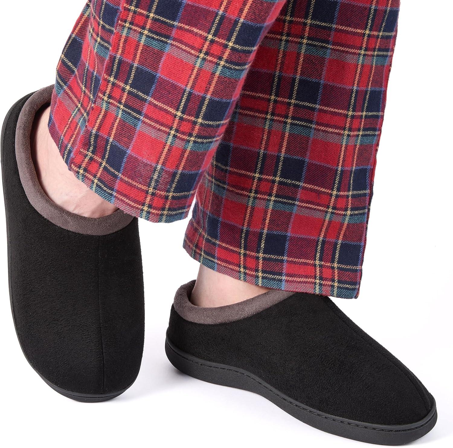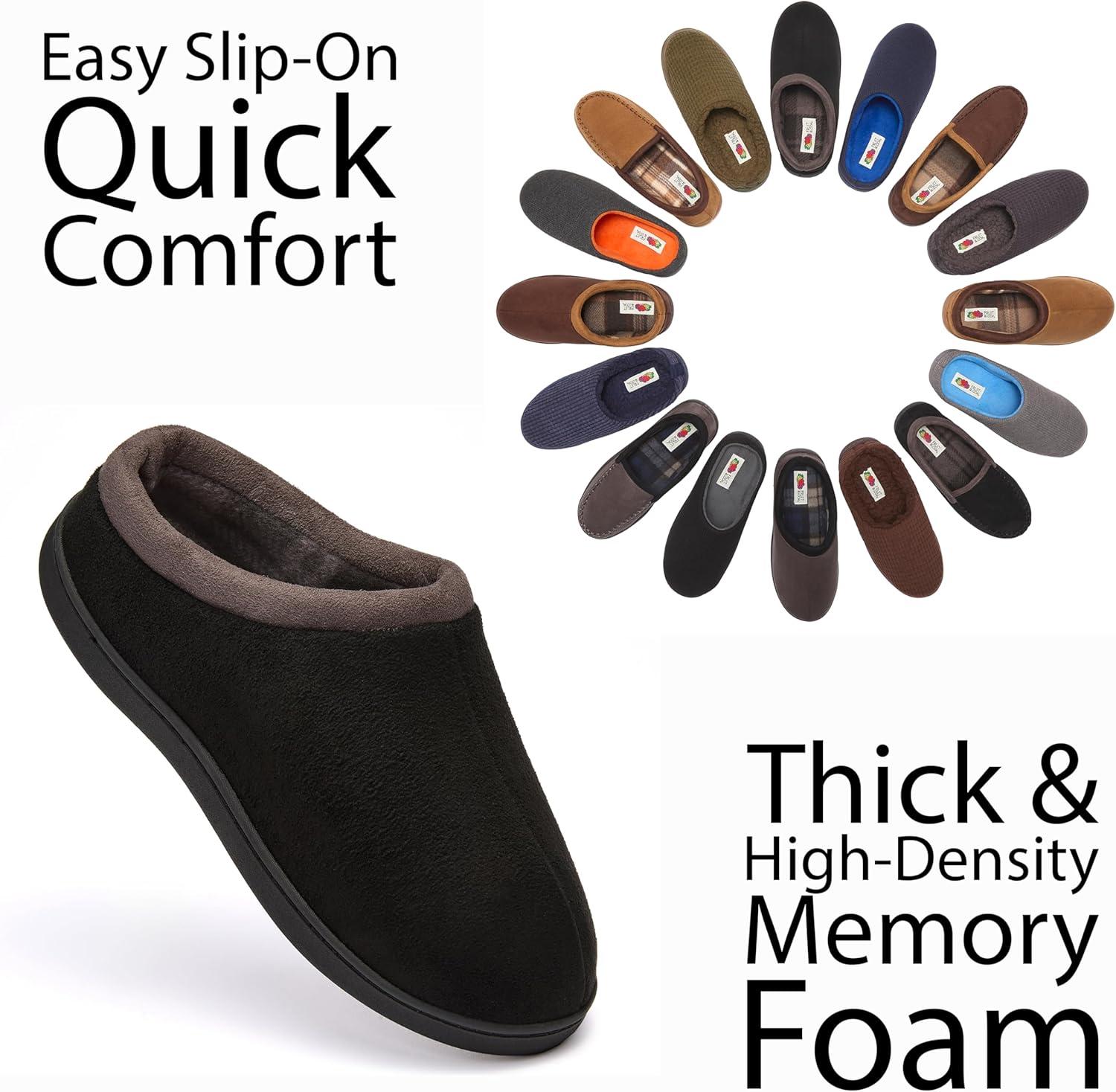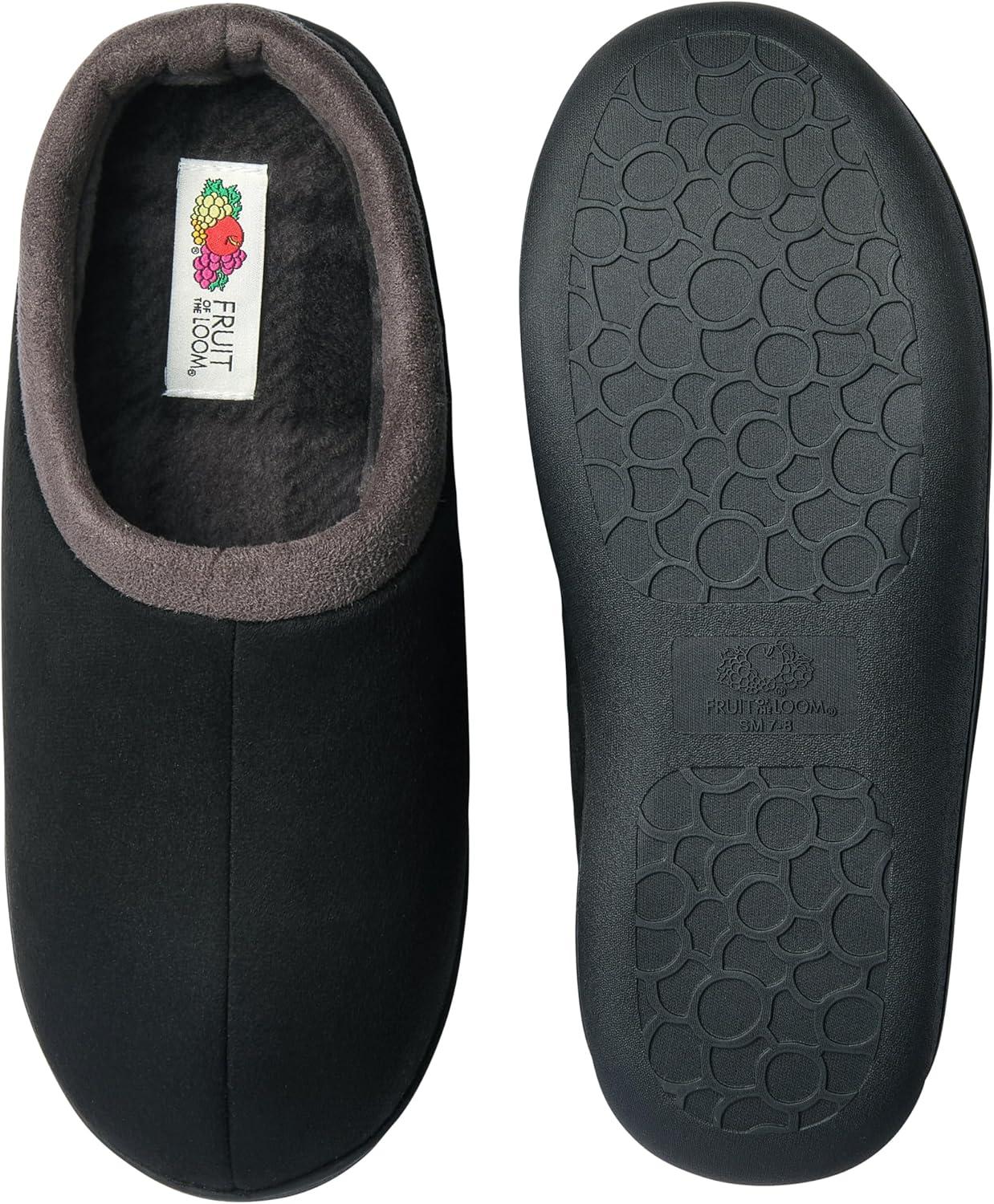 Fruit of the Loom Men’s Memory Foam Slippers – Microsuede Clogs – Indoor/Outdoor, Machine Washable Zapatillas Cómodas(Black)