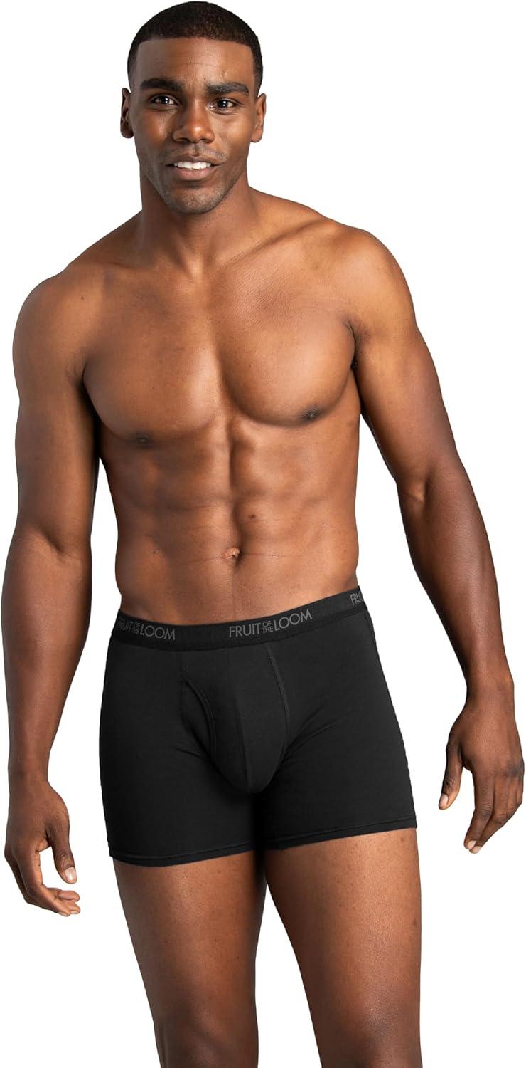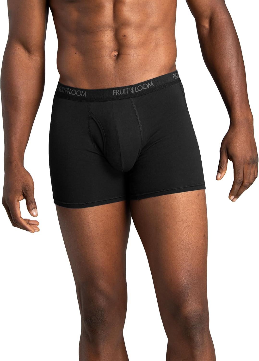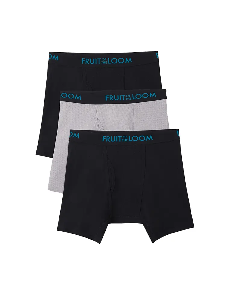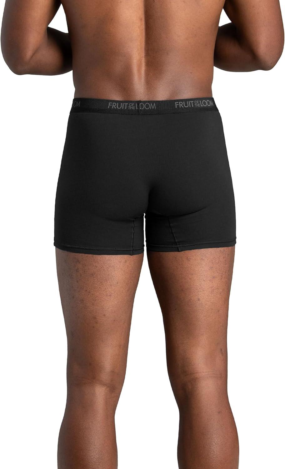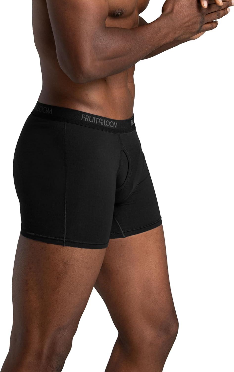 Fruit of the Loom mens 4-way Stretch Boxer Briefs | Lightweight & Moisture Wicking Underwear | Long Leg, Regular Leg & Trunk(Regular Leg – Cotton Stretch – Black/Grey)