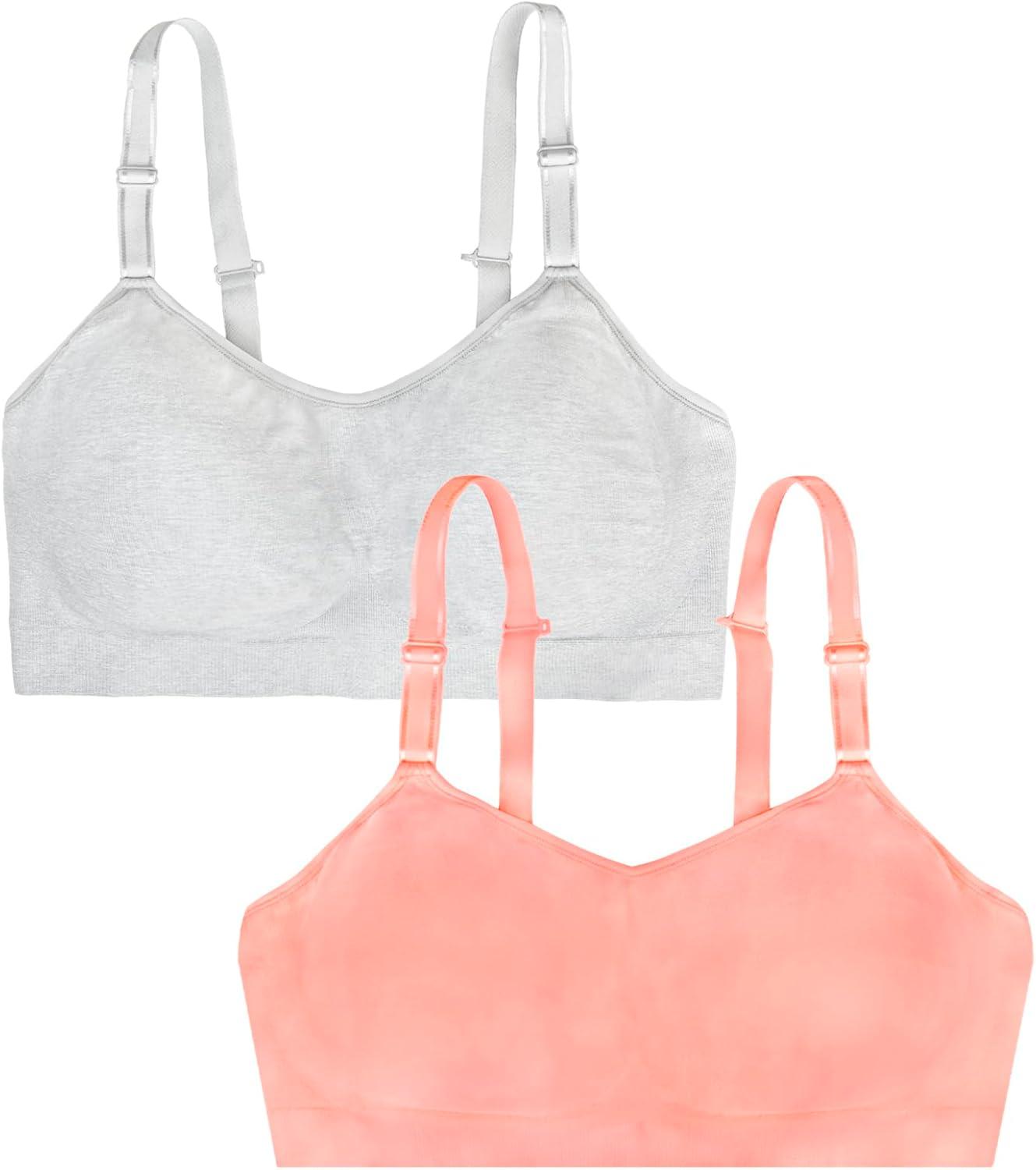 Fruit of the Loom Women’s 2-Pack Stretch Wireless Bra w/Built in Pads(Peach Gelato/Grey Heather)