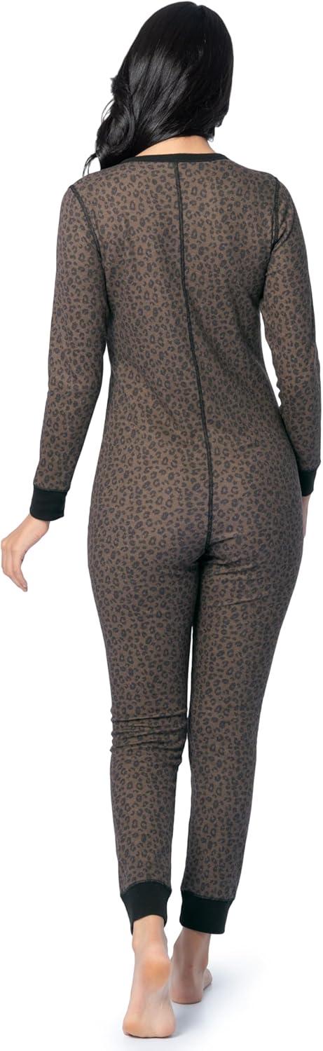 Fruit of the Loom womens Micro Waffle Premium Thermal Union Suit(Cheetah Print)