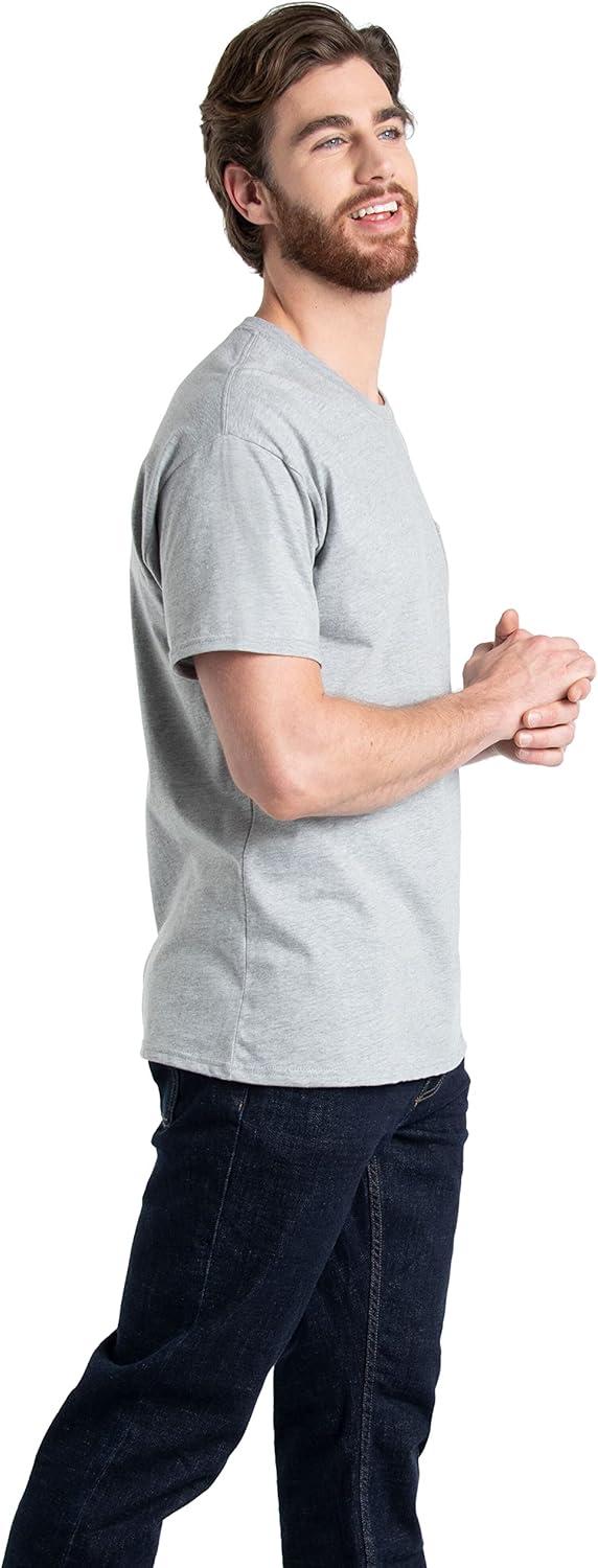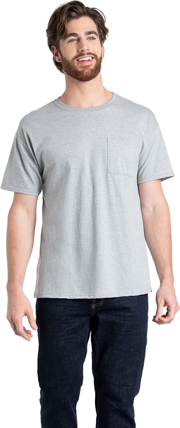 Fruit of the Loom Men’s Eversoft Cotton Short Sleeve Pocket T-Shirts, Breathable, 2-Pack(2 Pack – Grey Heather)