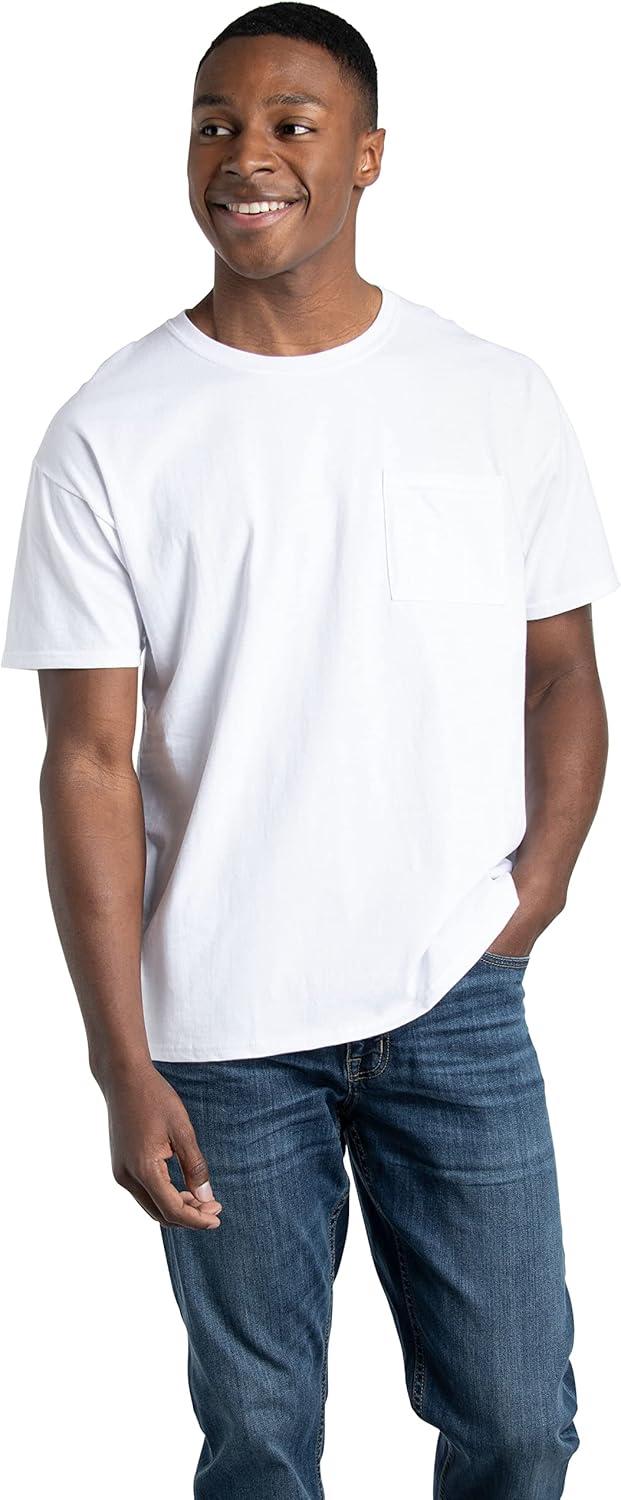 Fruit of the Loom Men’s Eversoft Cotton Short Sleeve Pocket T-Shirts, Breathable, 2-Pack(White – 6 Pack)