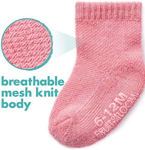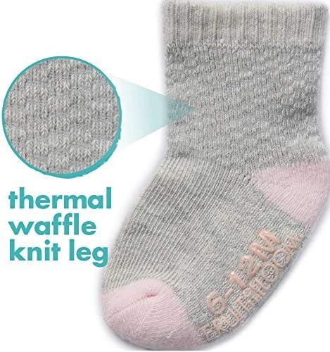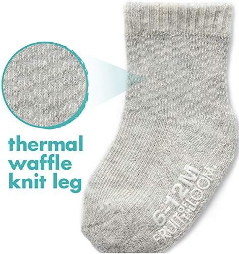 Fruit of the Loom All Weather Baby & Toddler Socks – Cotton Crew Socks with Grips for Boys, Girls and Unisex(Grey)