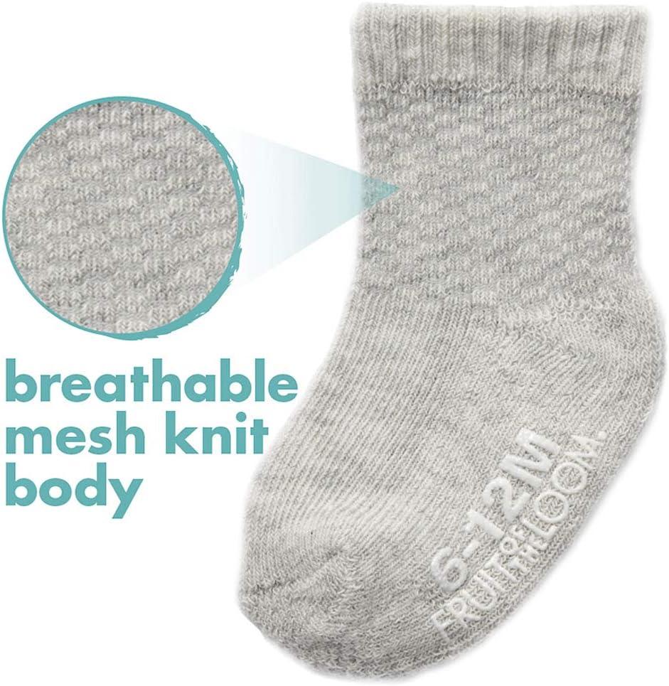 Fruit of the Loom Baby 14-Pack Grow & Fit Flex Zones Cotton Stretch Socks – Unisex, Girls, Boys(Grey)