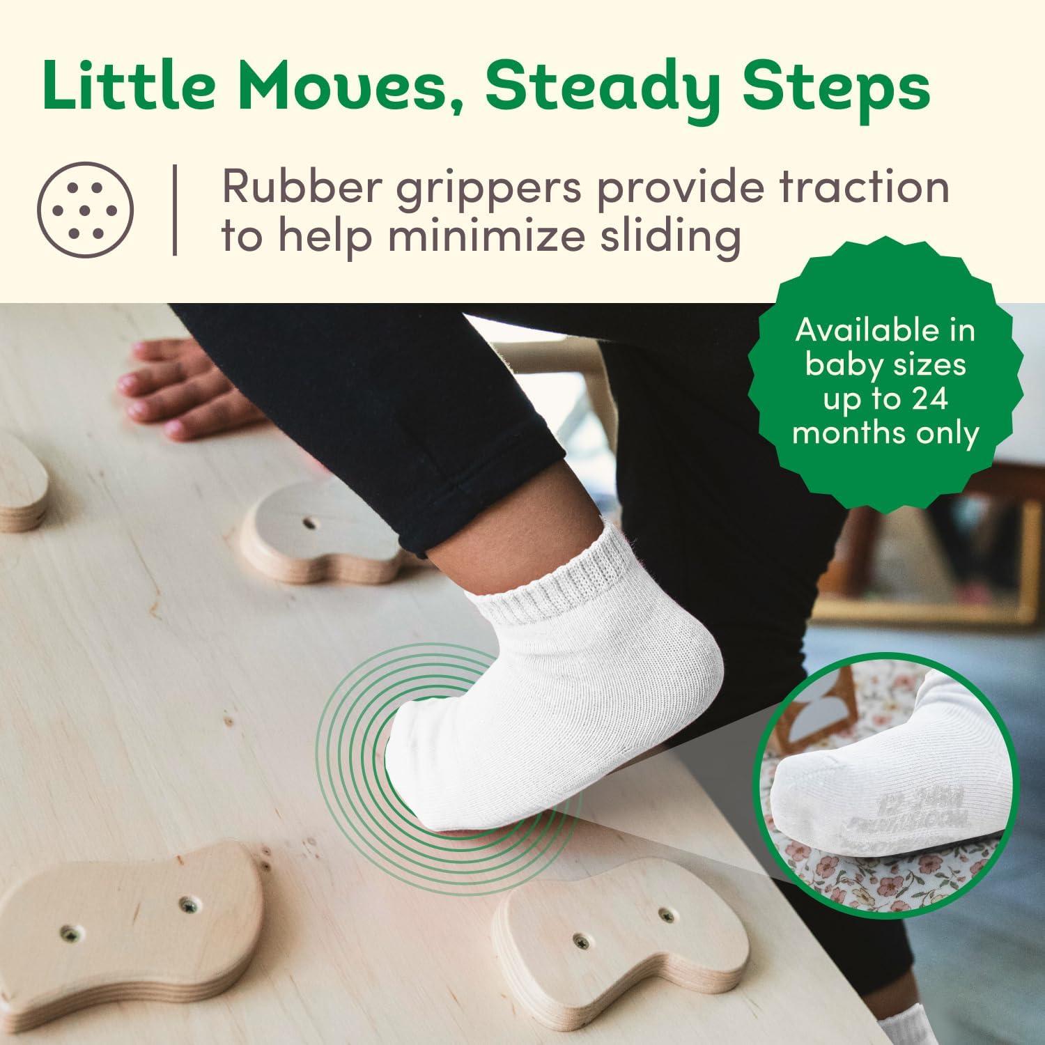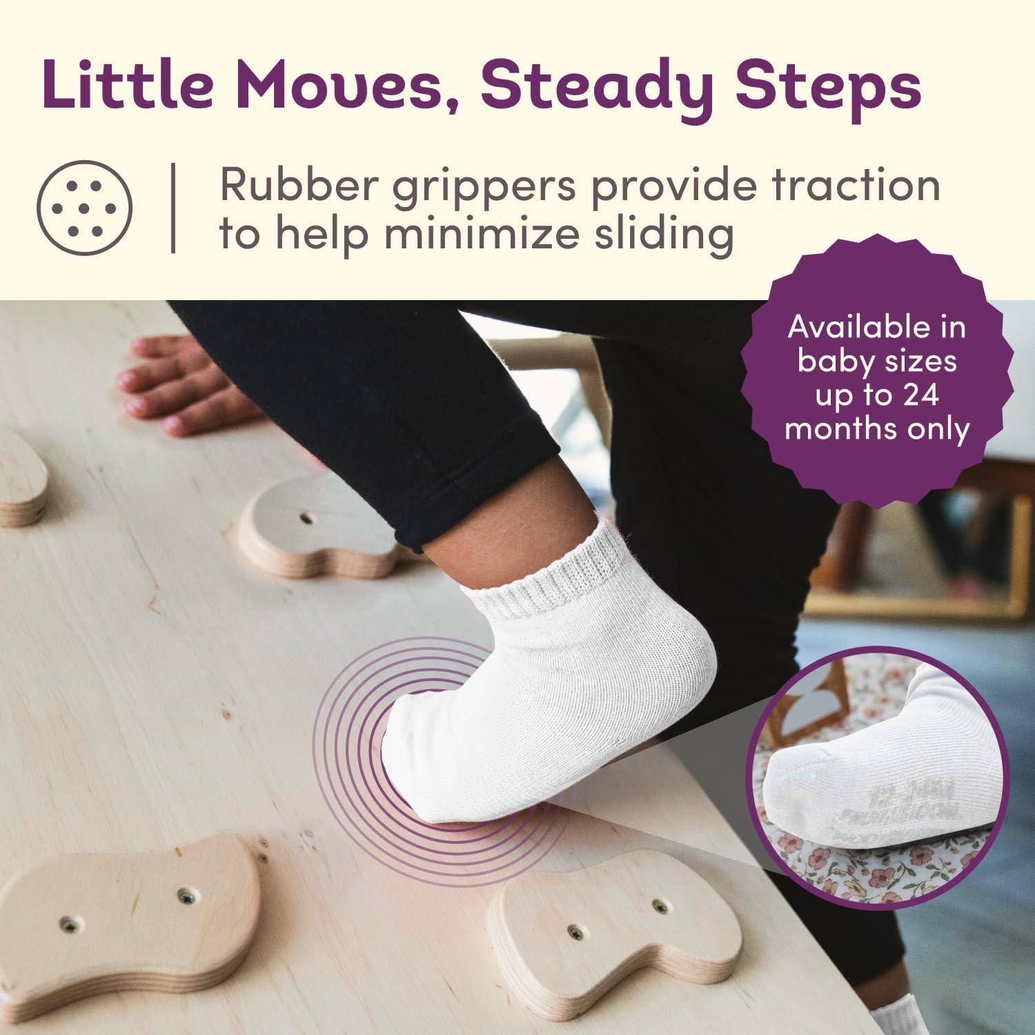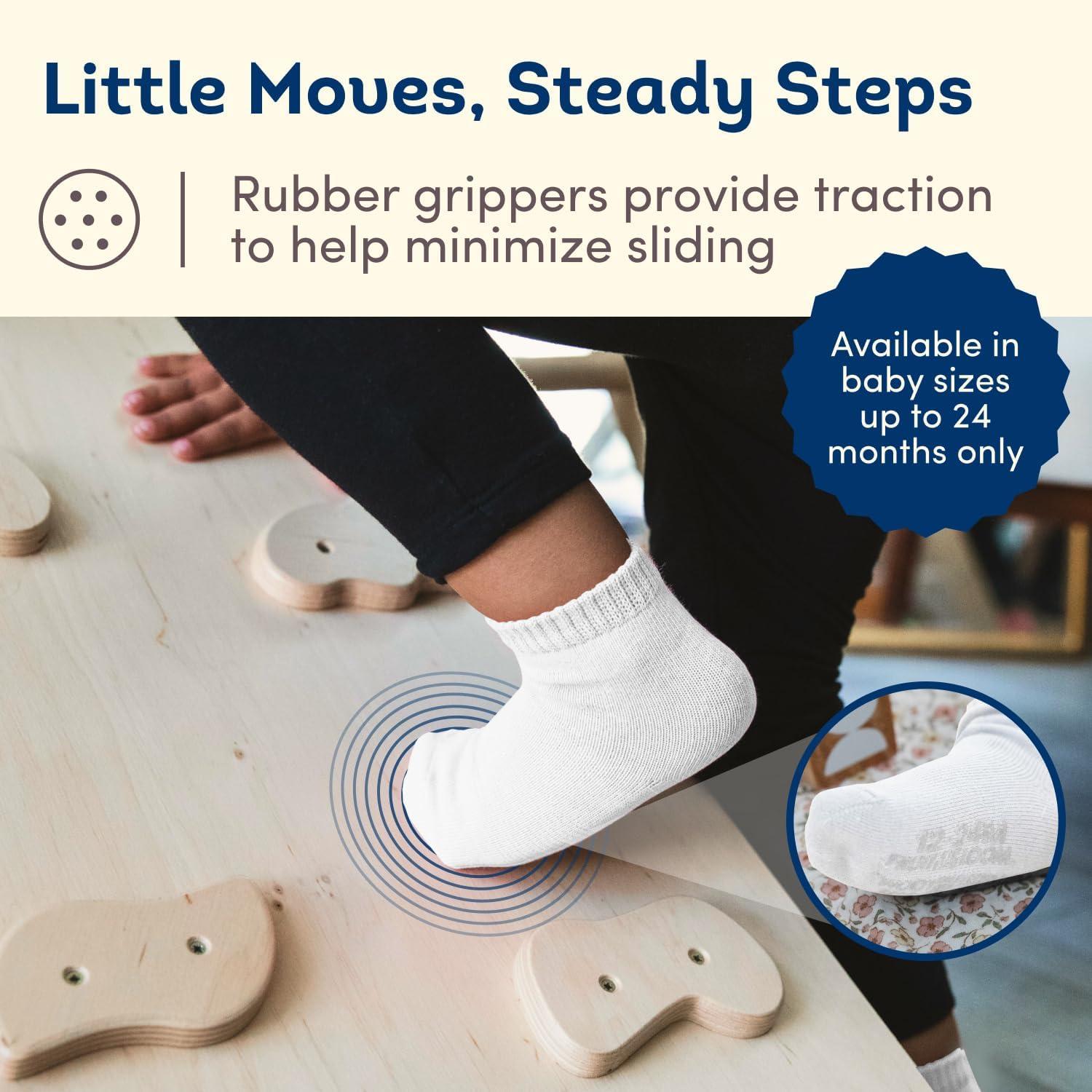 Fruit of the Loom All Weather Baby & Toddler Socks – Cotton Crew Socks with Grips for Boys, Girls and Unisex(White)