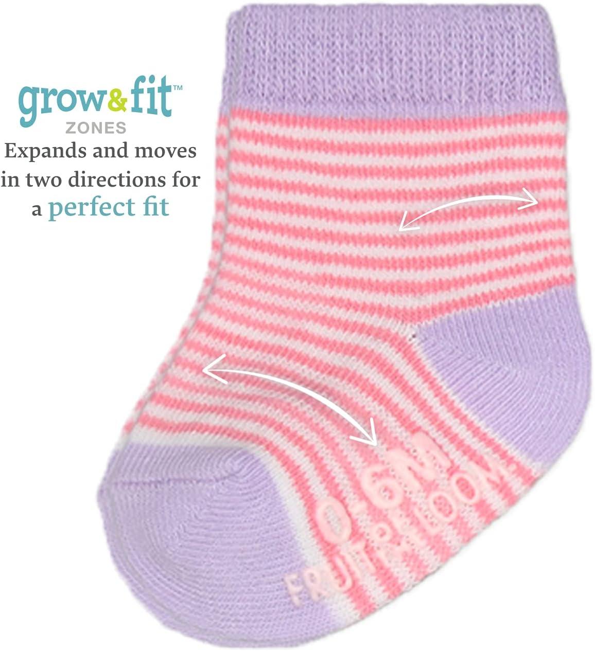 Fruit of the Loom Baby 14-Pack Grow & Fit Flex Zones Cotton Stretch Socks – Unisex, Girls, Boys(Pink Stripe)