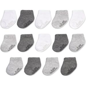 Fruit of the Loom Baby 14-Pack Grow & Fit Flex Zones Cotton Stretch Socks – Unisex, Girls, Boys(Black White Grey)