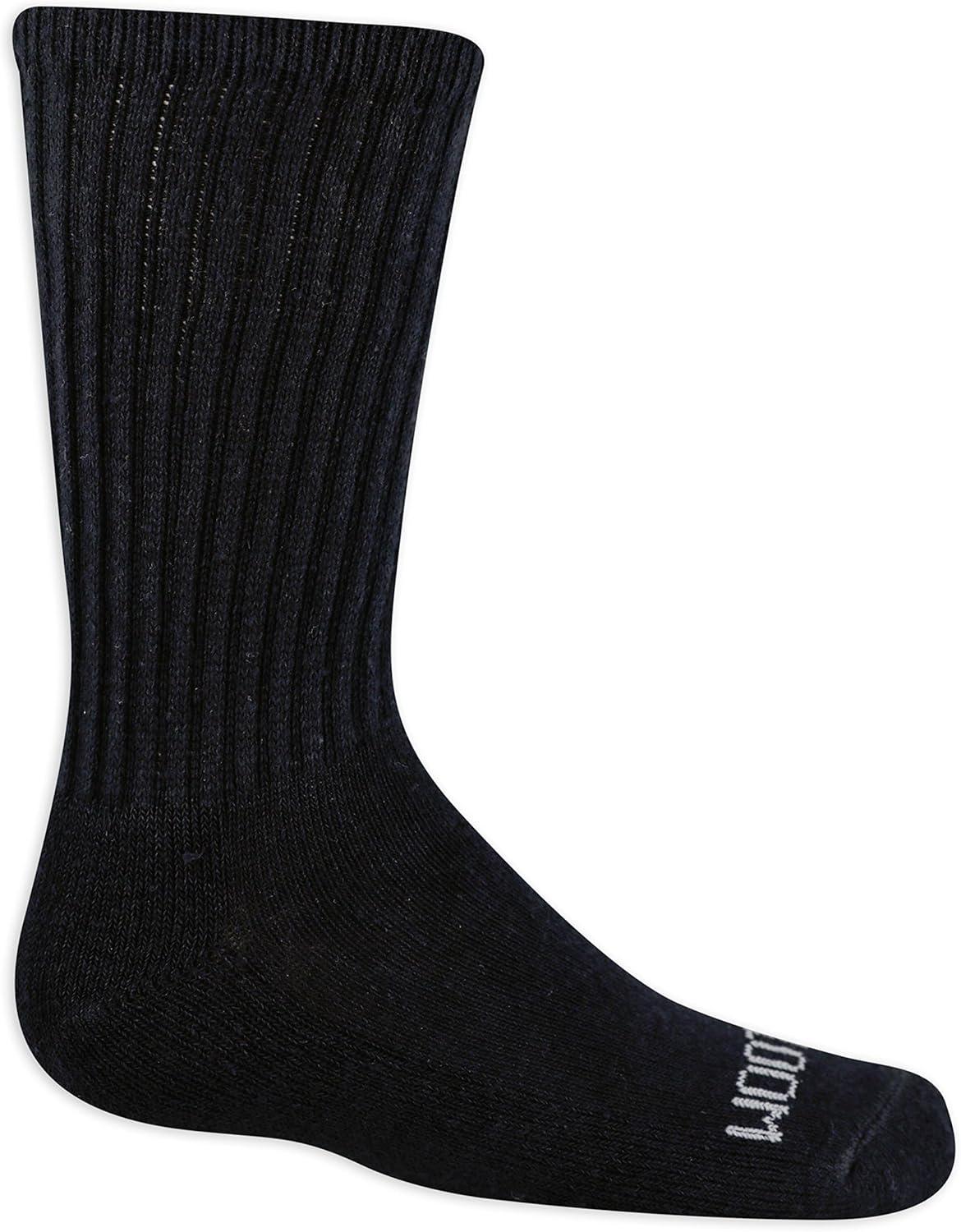 Fruit of the Loom Boys’ Everyday Active Crew Socks (12 Pack)(Black)