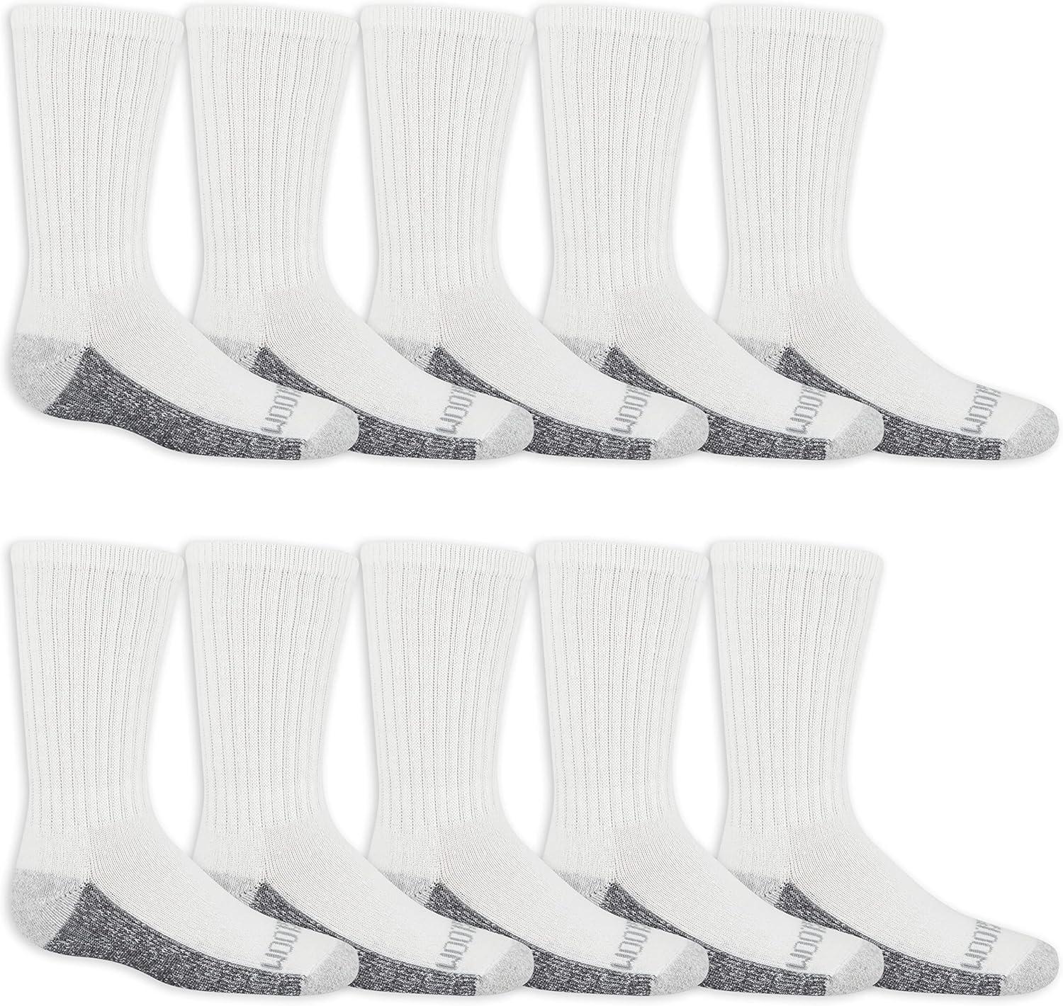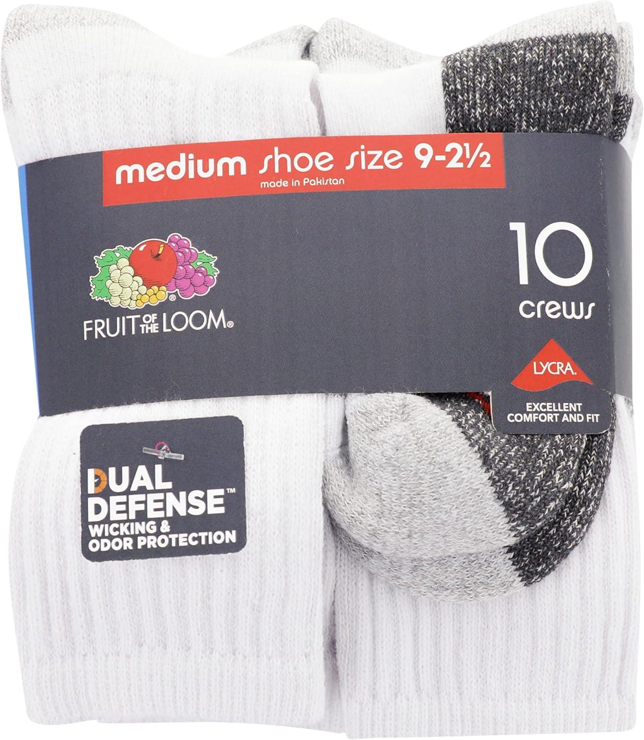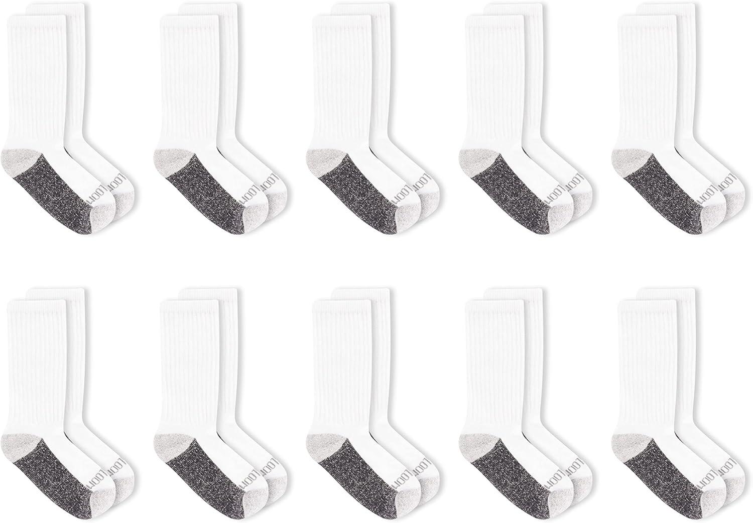 Fruit of the Loom Boys’ Dual Defense Crew Socks (10 Pack)(White)