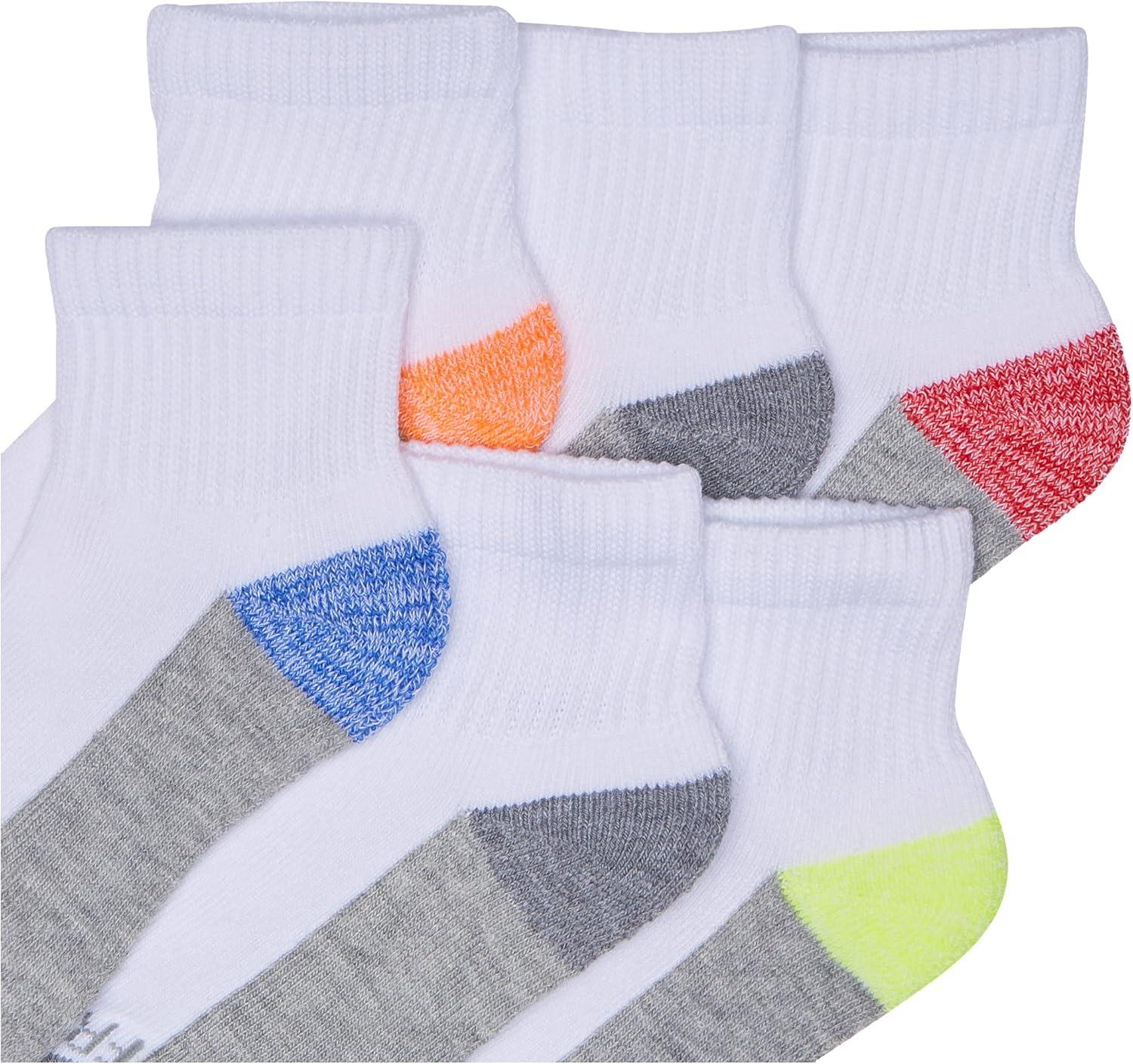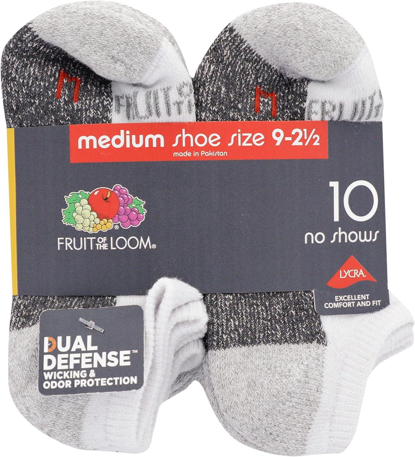 Fruit of the Loom Boys’ Dual Defense No Show Socks (10 Pack)(White/Red/Black/Gray/Green)