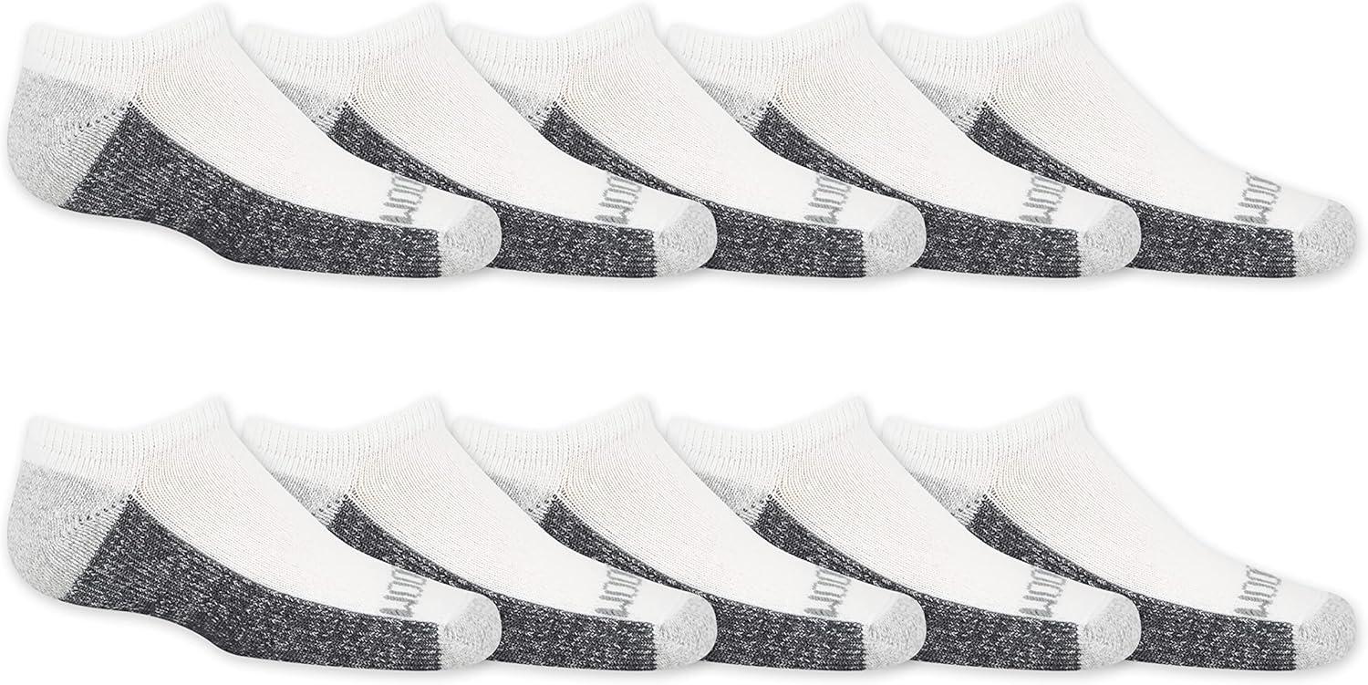 Fruit of the Loom Boys’ Dual Defense No Show Socks (10 Pack)(White Assort)