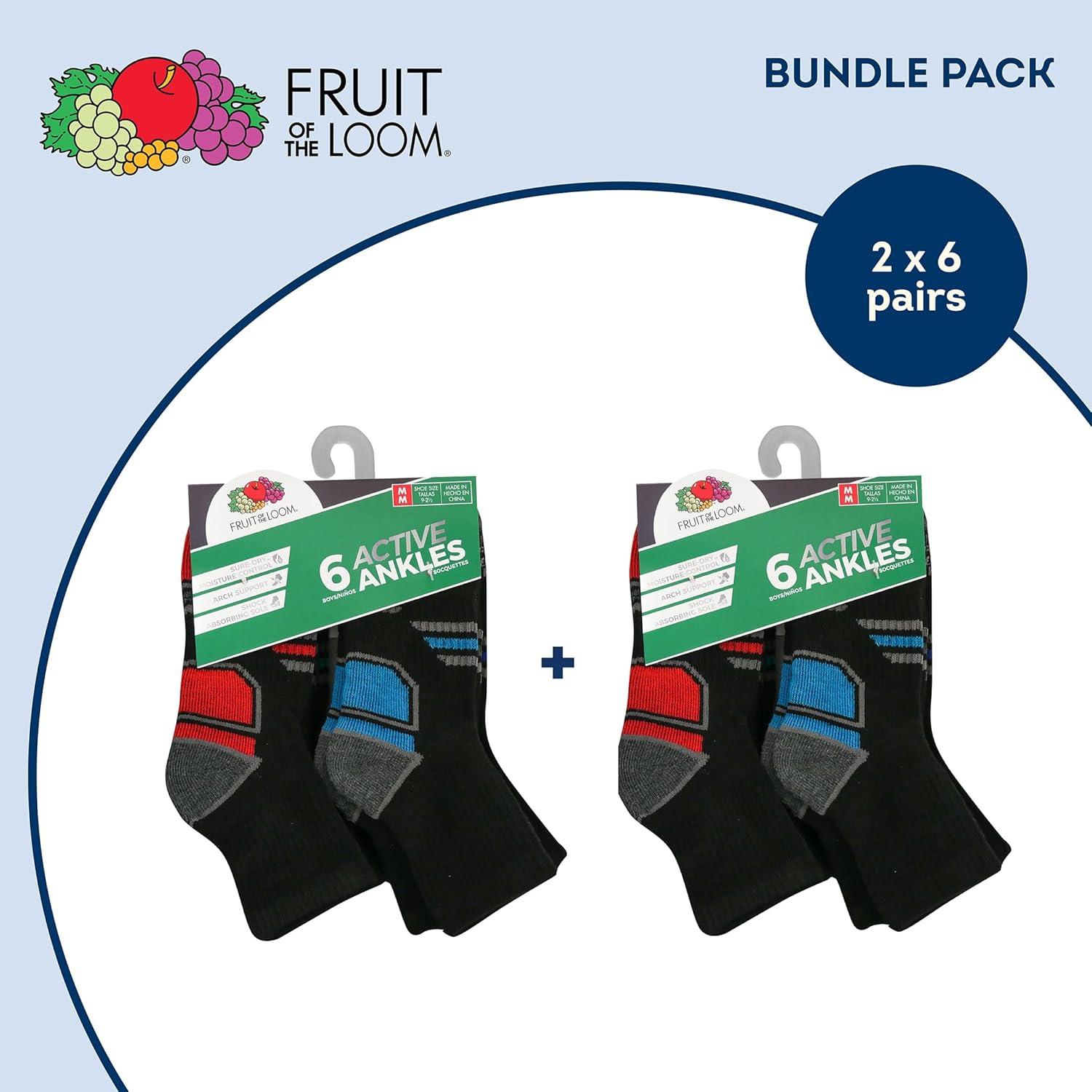 Fruit of the Loom Boys’ Durable Cushion Ankles Socks (10 Pack)(Black)