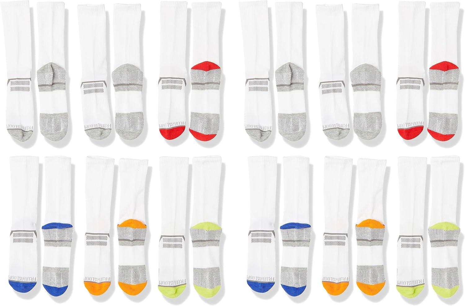 Fruit of the Loom Boys’ Everyday Active Crew Socks (12 Pack)(White)