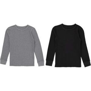 Fruit of the Loom Boys Premium 2-Pack Thermal Waffle Crew Top(Black/Heather Greystone)
