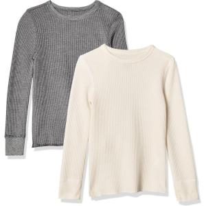 Fruit of the Loom Boys Premium 2-Pack Thermal Waffle Crew Top(Heather Greystone/Natural)