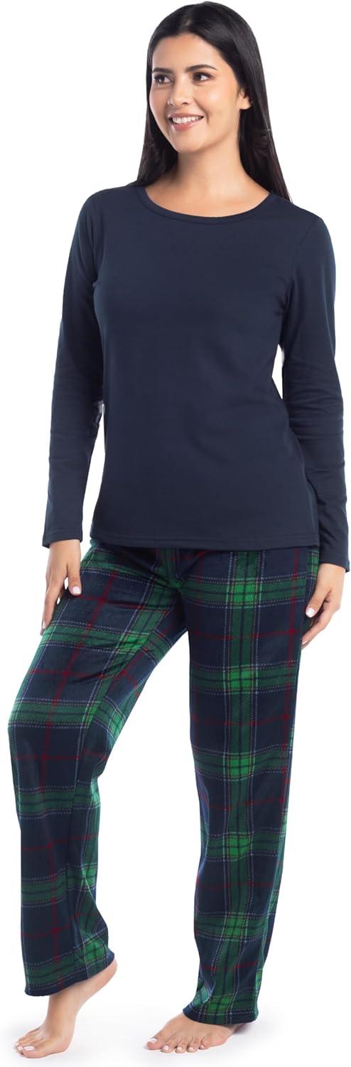 Fruit of the Loom Matching Holiday Family Sleep Pajama Set for Women, Men, and Kids(Navy/Green Plaid)