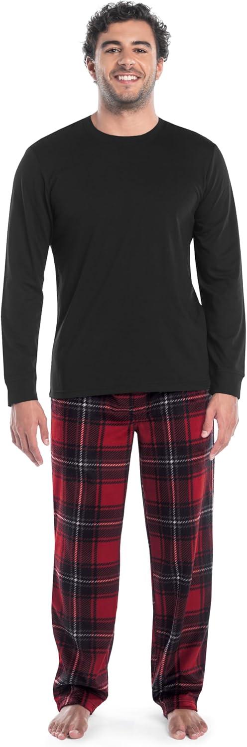 Fruit of the Loom Men’s 360 Stretch Crewneck Top and Jogger Pant Sleep Pajama Set(Black)