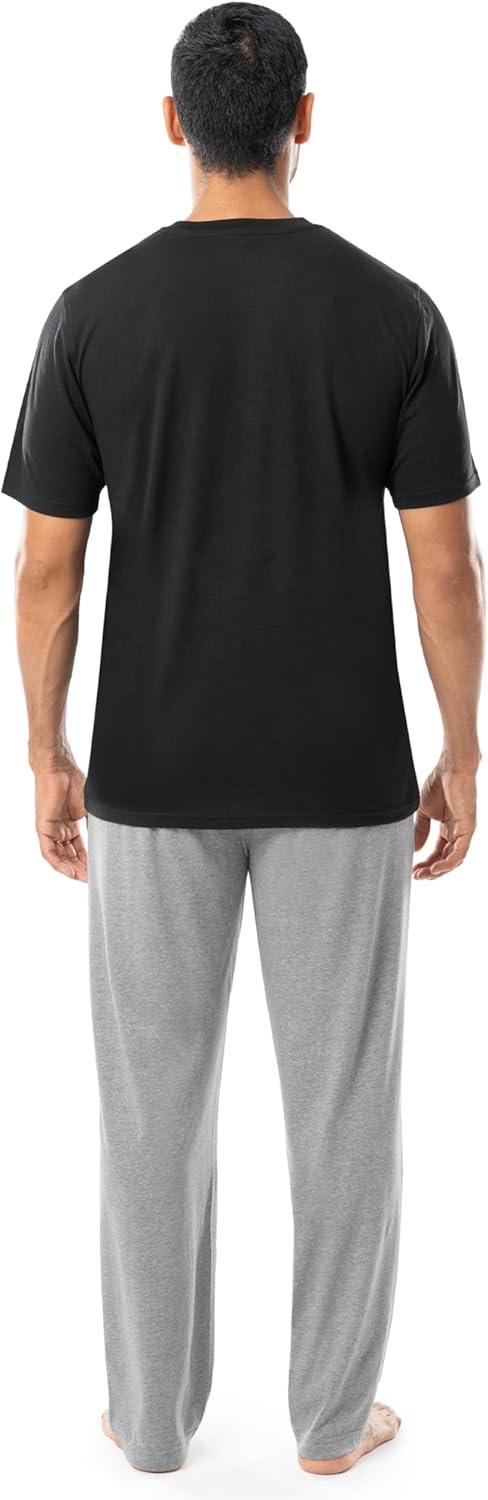 Fruit of the Loom Men’s 2-Piece Jersey Knit Pajama Set(Black/Grey Heather)