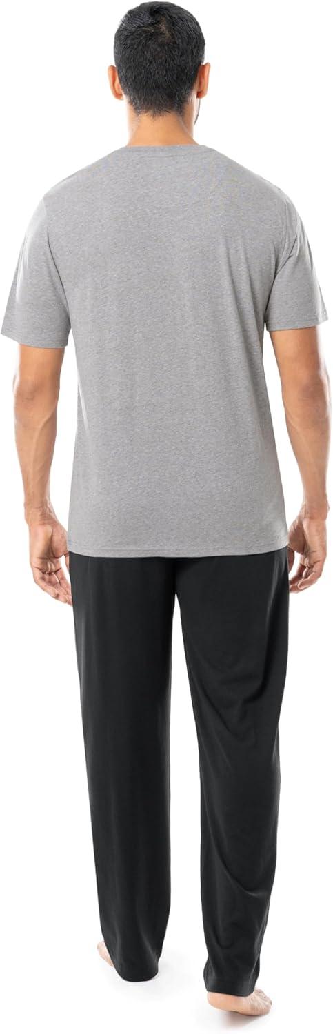 Fruit of the Loom Men’s 360 Stretch Crewneck Top and Jogger Pant Sleep Pajama Set(Grey Heather)
