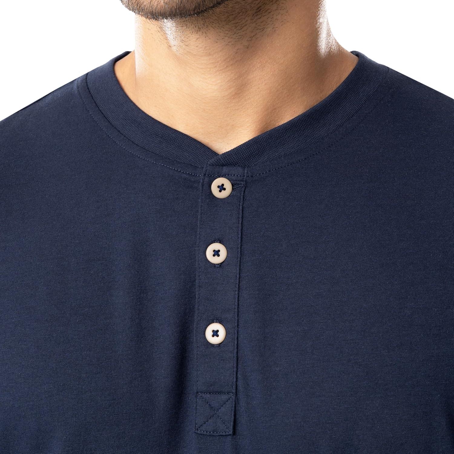 Fruit of the Loom Men’s 360 Stretch Long Sleeve Henley Top and Pant Sleep Pajama Set(Black)