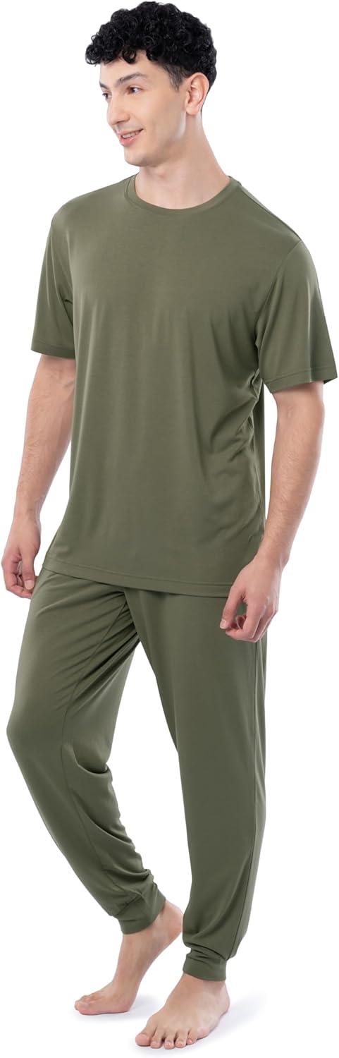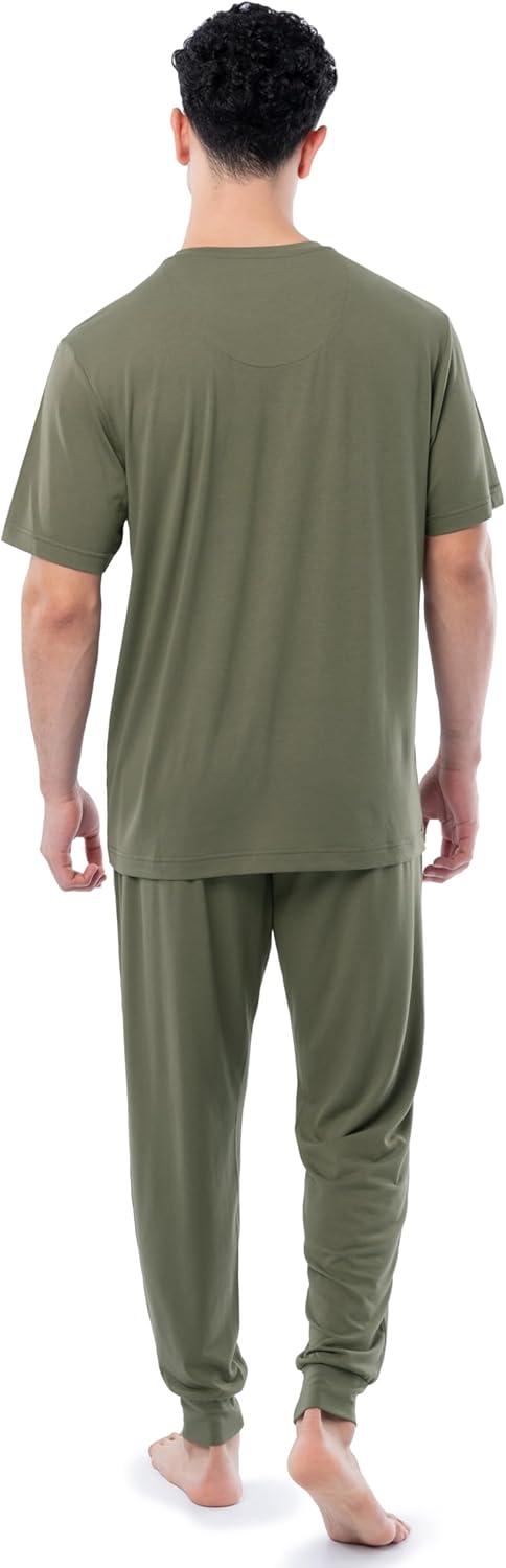 Fruit of the Loom Men’s 360 Stretch Crewneck Top and Jogger Pant Sleep Pajama Set(Dusty Olive)