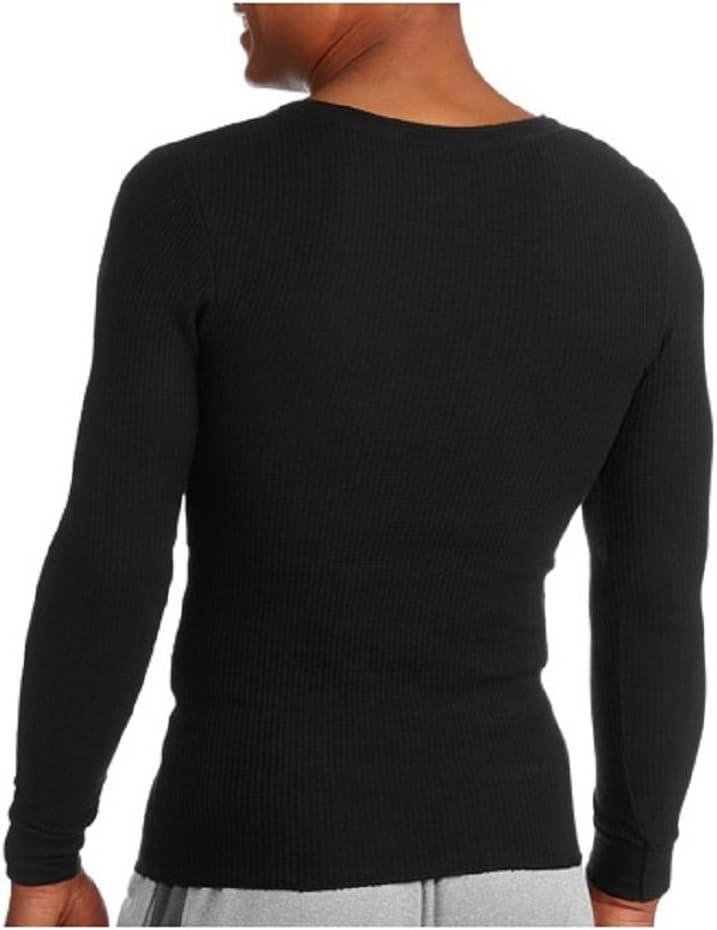 Fruit of the Loom Men’s Recycled Waffle Thermal Underwear Crew Top (1 and 2 Packs)(Black)