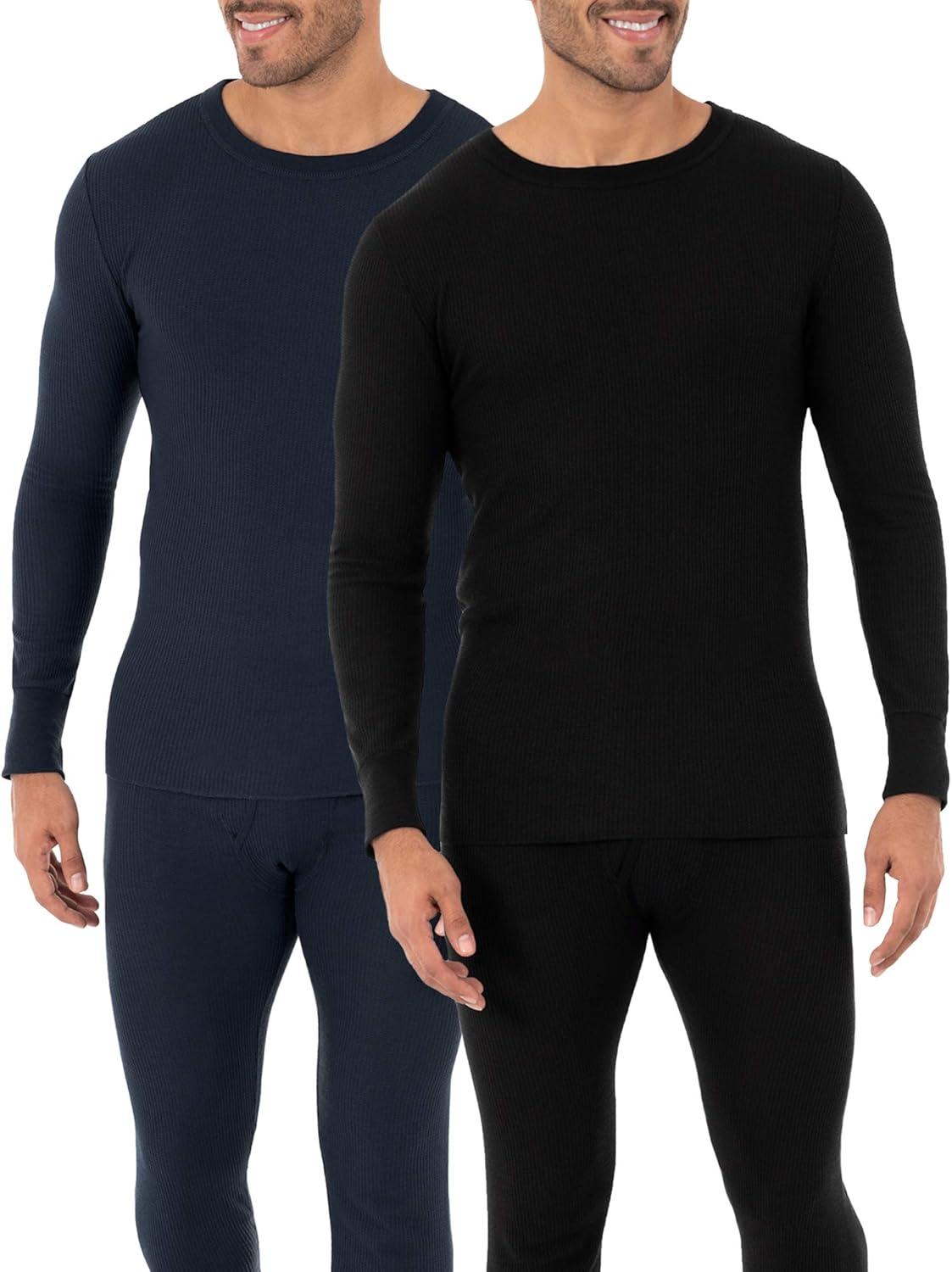 Fruit of the Loom Men’s Recycled Waffle Thermal Underwear Crew Top (1 and 2 Packs)(Black/Navy)