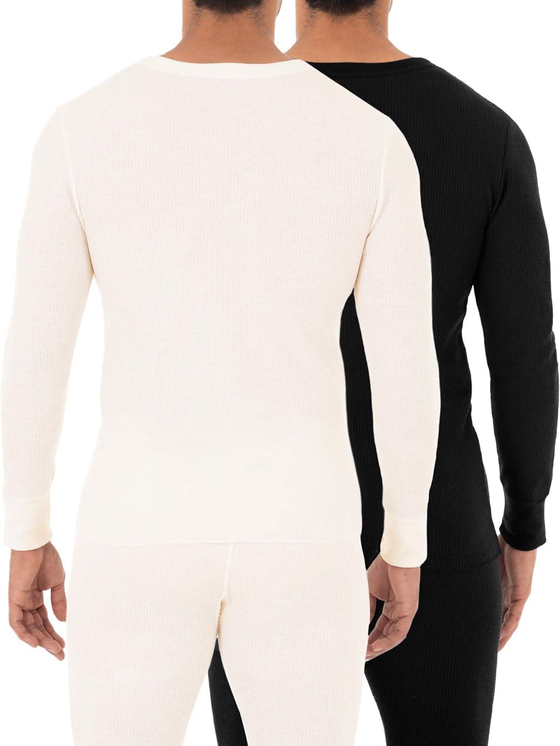 Fruit of the Loom Men’s Classic Midweight Waffle Thermal Underwear Crew Top(Black/Black (2-pack))