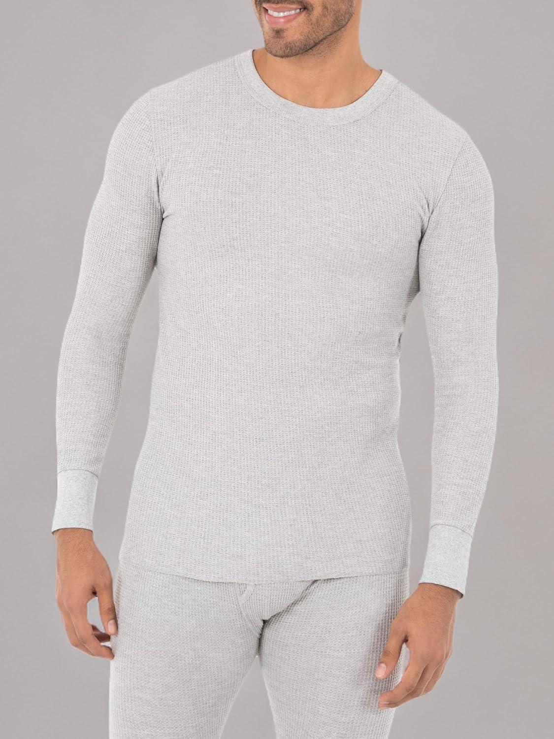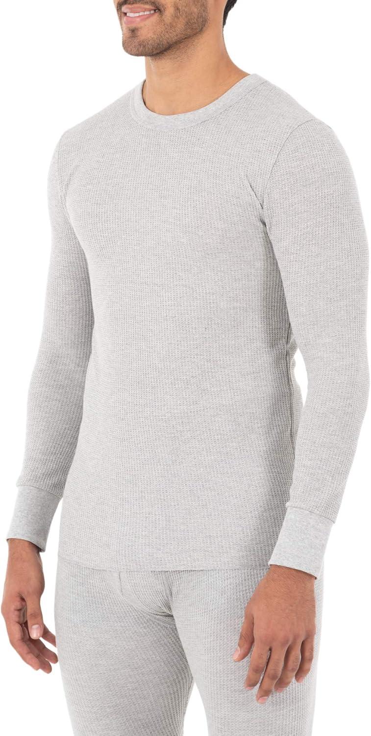 Fruit of the Loom Men’s Recycled Waffle Thermal Underwear Crew Top (1 and 2 Packs)(Greystone Heather)