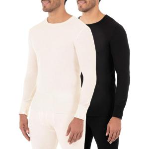 Fruit of the Loom Men’s Recycled Waffle Thermal Underwear Crew Top (1 and 2 Packs)(Black/Natural)