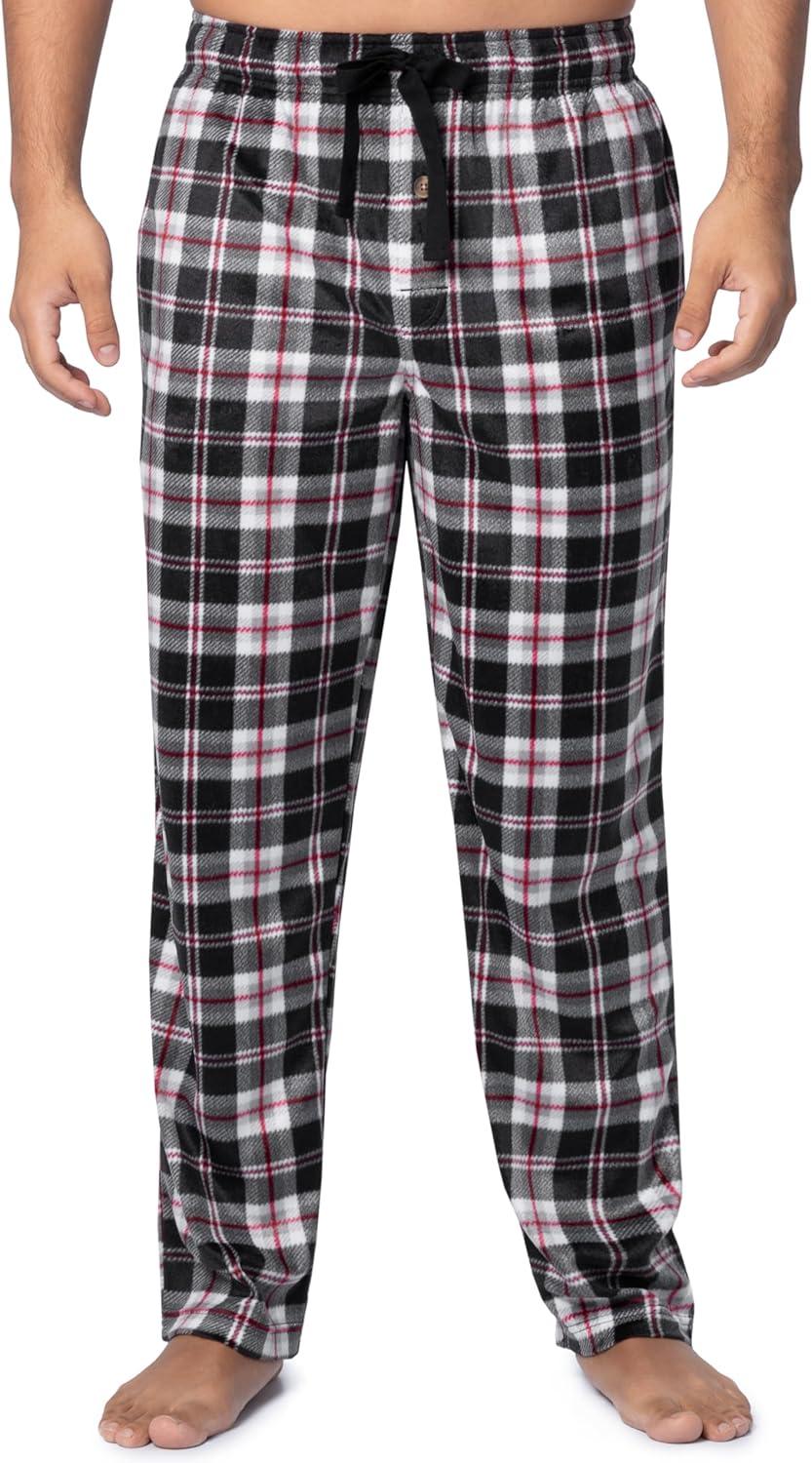 Fruit of the Loom mens Microsuede Fleece Sleep Pajama Pants, 2-pack(Black Plaid/Red Check)