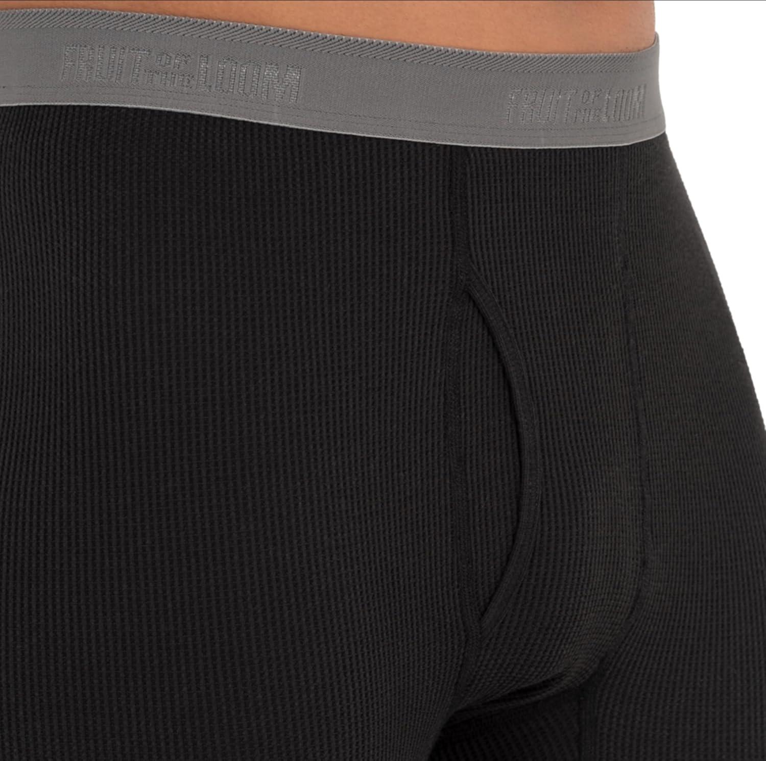 • Fruit of the Loom Mens Recycled Premium Waffle Thermal Underwear Long Johns Bottom (1, 2, 3, and 4 Packs)(Black/Black/Natural)