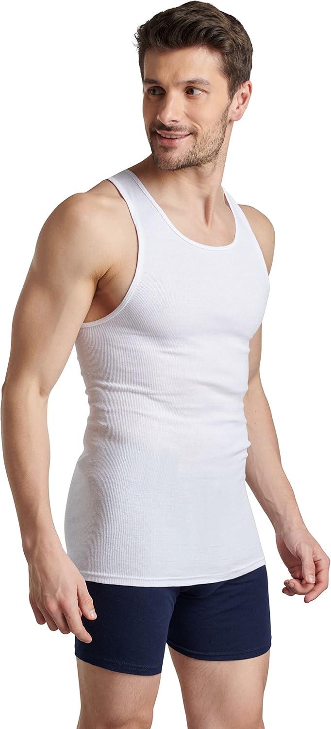 Fruit of the Loom Men’s Sleeveless Tag Free Moisture Wicking Tank A-Shirt(6 Pack – White)