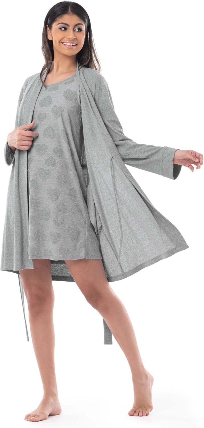 Fruit of the Loom Women’s Beyondsoft Sleep Chemise and Robe Set(Light Grey Heather)