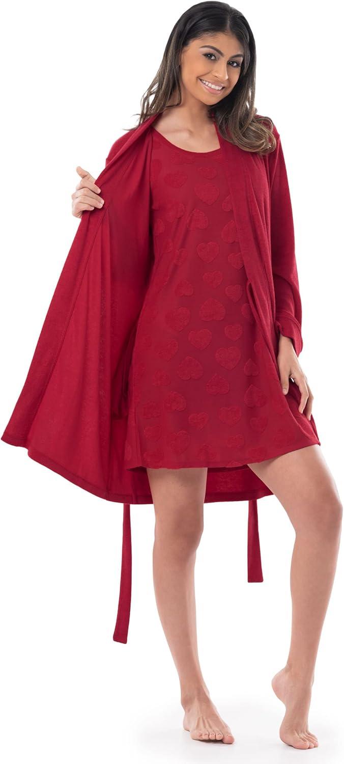 Fruit of the Loom Women’s Beyondsoft Sleep Chemise and Robe Set(Radiant Red)