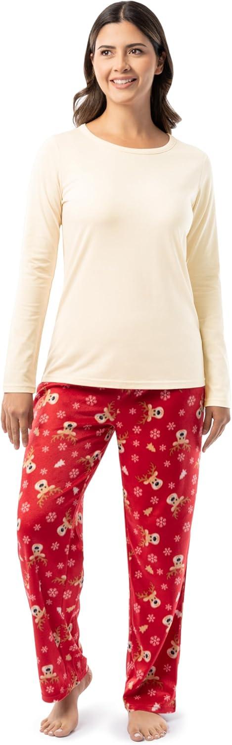 Fruit of the Loom Men Matching Holiday Family Sleep Pajama Set for Women, Men, and Kids(Cheerful Deer)