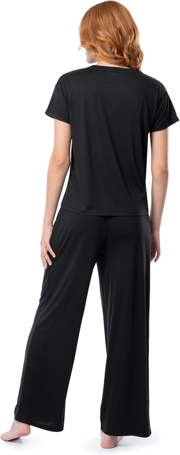 Fruit of the Loom Women’s Drop Shoulder Tee and Convertible Waist Sleep Set(Black)