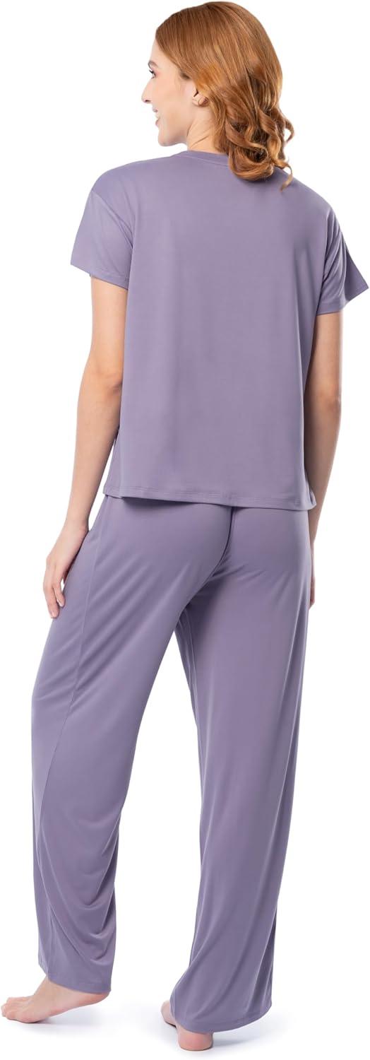 Fruit of the Loom Women’s Drop Shoulder Tee and Convertible Waist Sleep Set(Dusk)