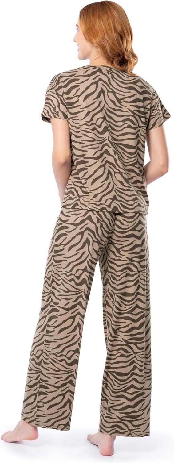 Fruit of the Loom Women’s Drop Shoulder Tee and Convertible Waist Sleep Set(Zebra)