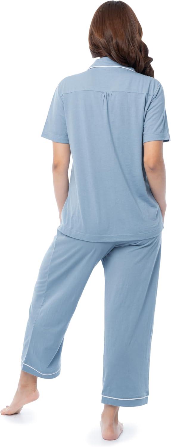 Fruit of the Loom Women’s Pipped Button Down Sleep Set(Ashley Blue)