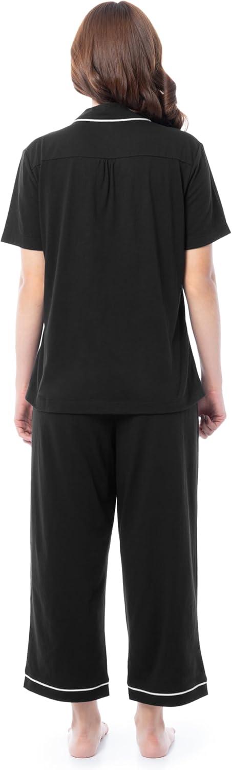 Fruit of the Loom Women’s Pipped Button Down Sleep Set(Black)