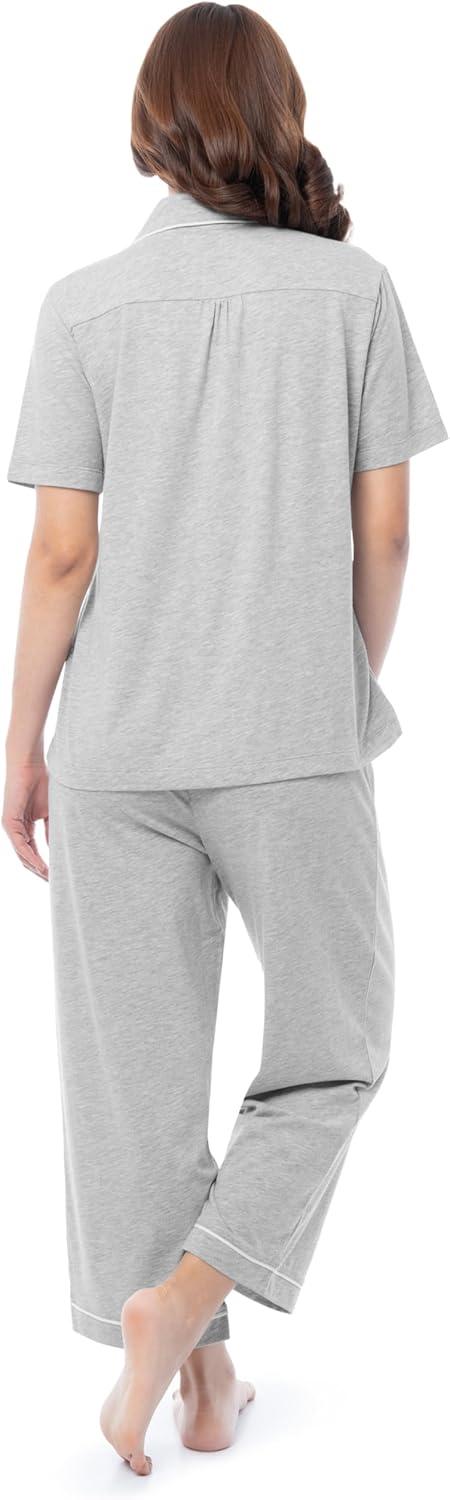Fruit of the Loom Women’s Pipped Button Down Sleep Set(Light Grey Heather)