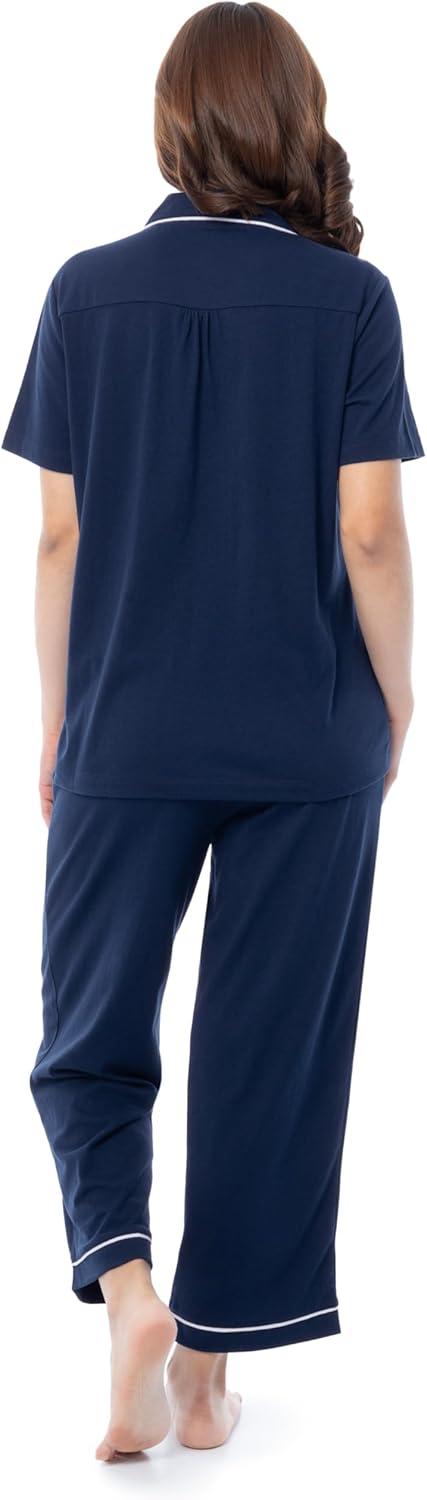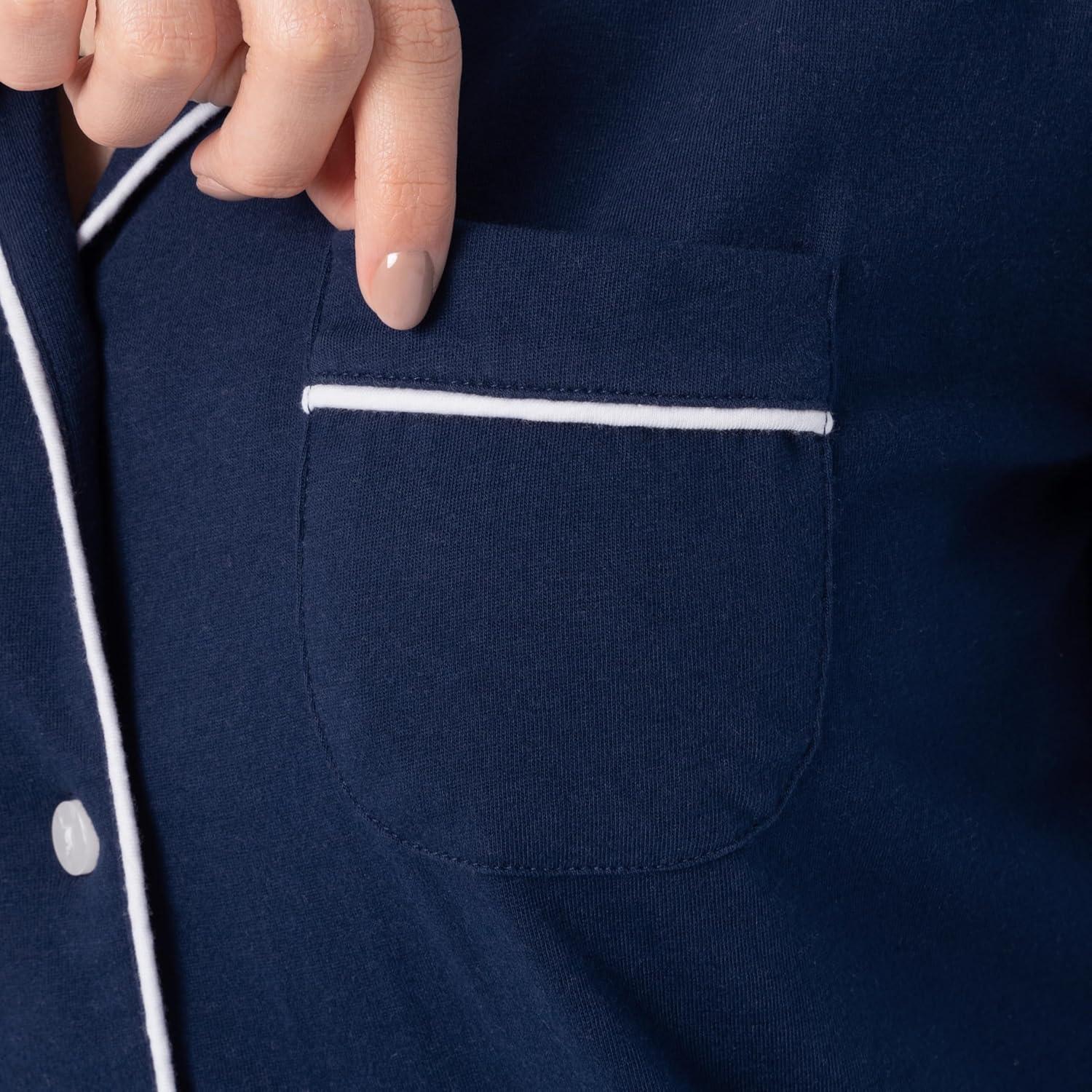 Fruit of the Loom Women’s Pipped Button Down Sleep Set(Navy)