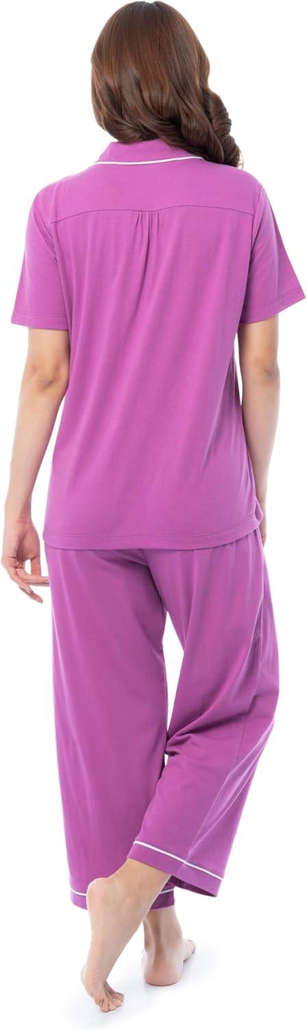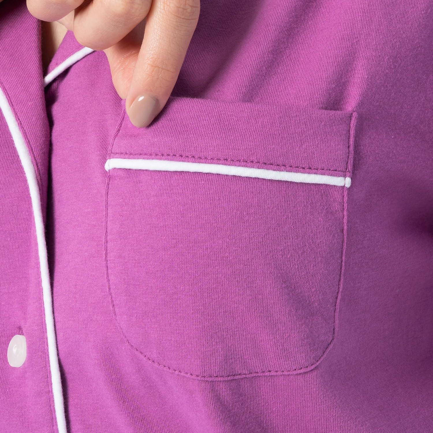 Fruit of the Loom Women’s Pipped Button Down Sleep Set(Radiant Orchid)