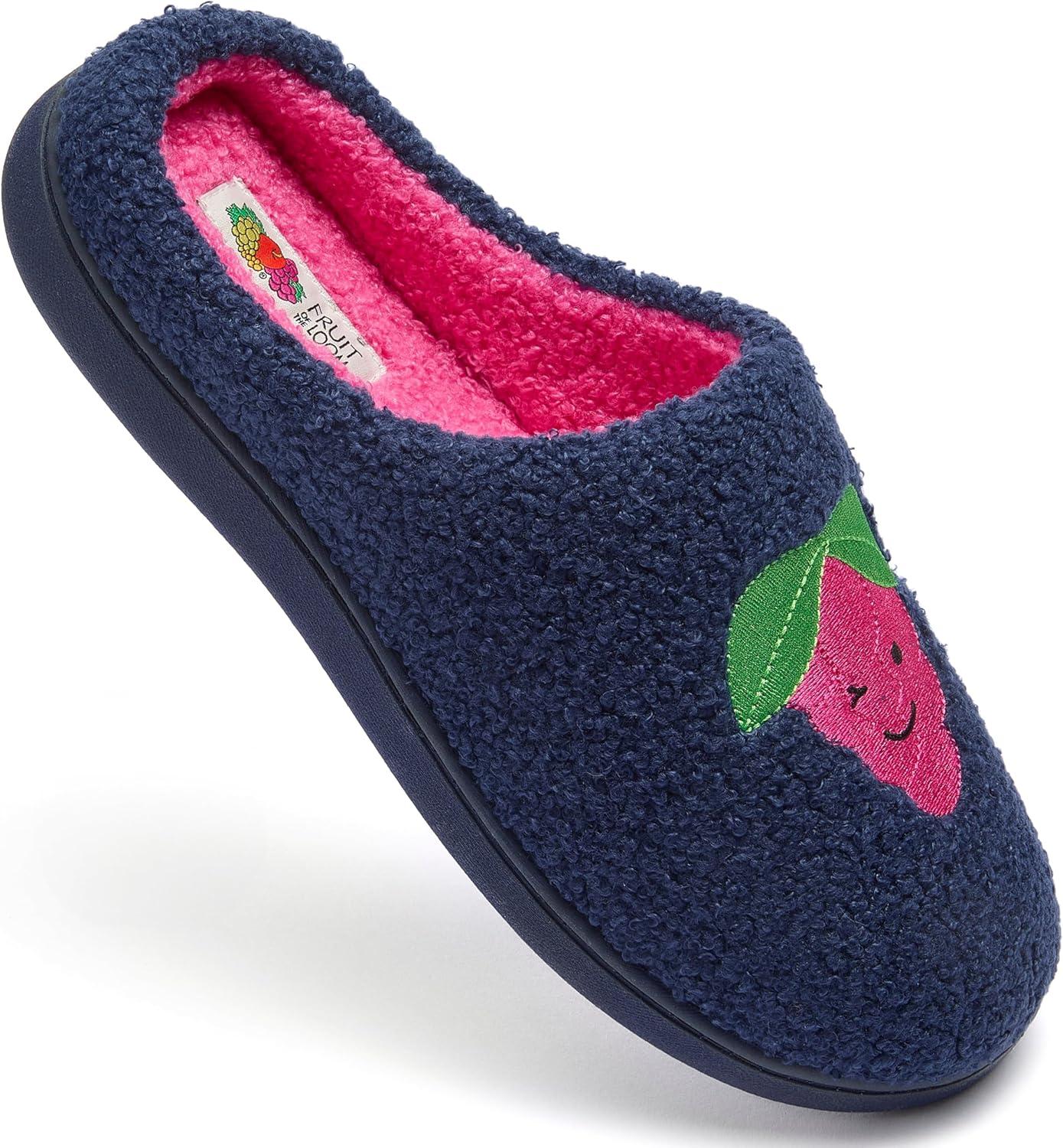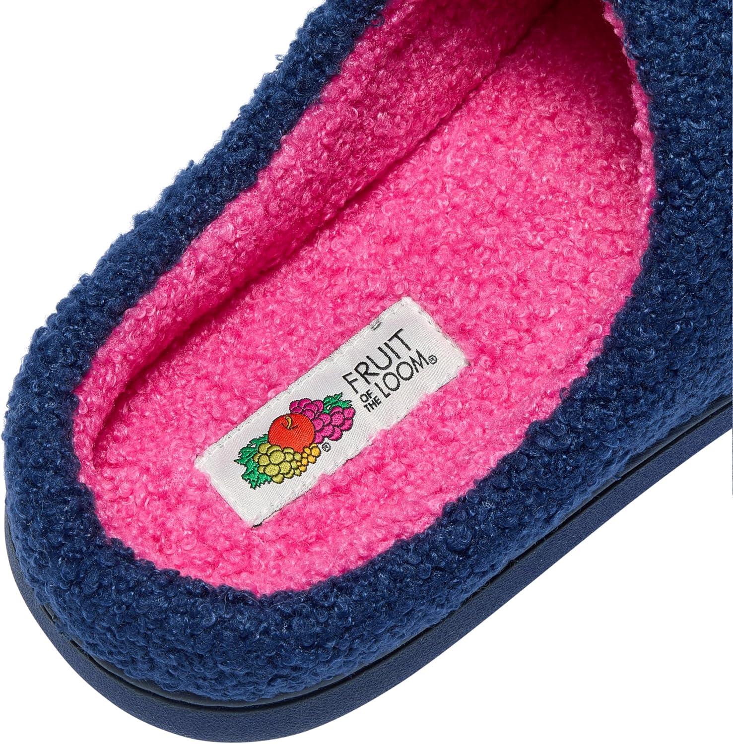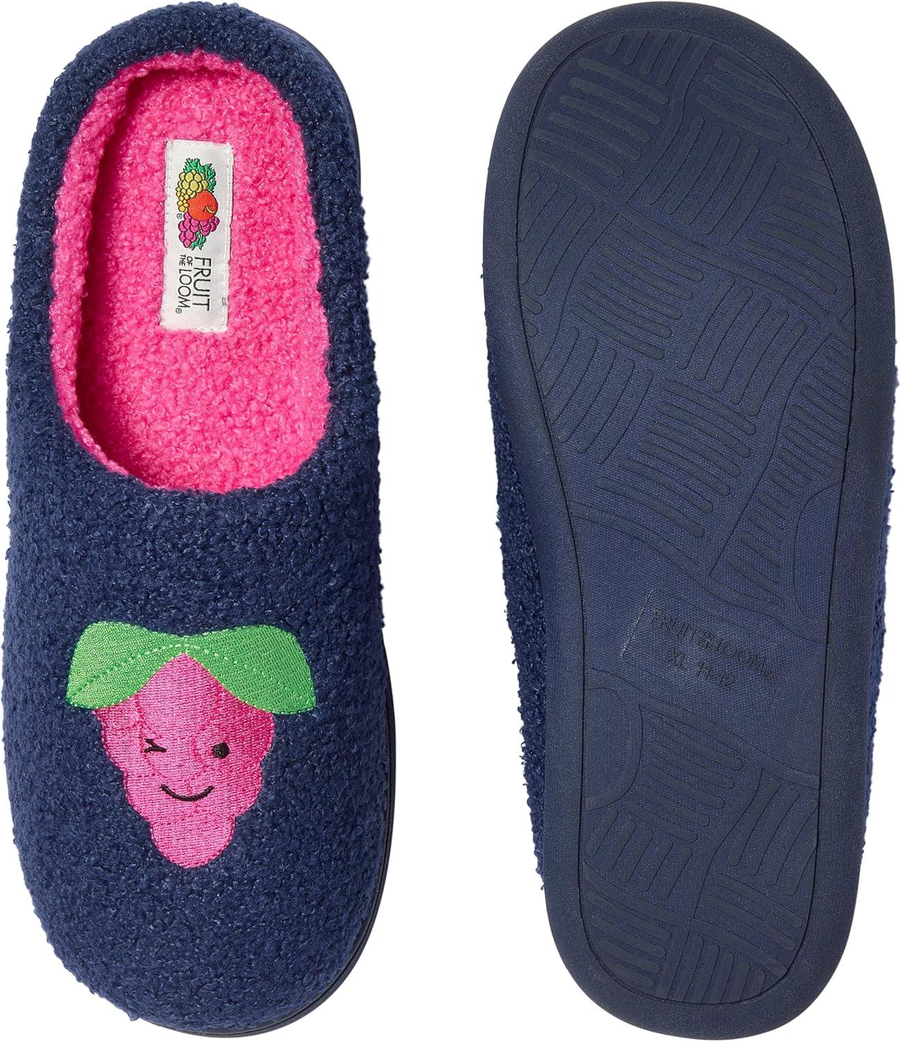 Fruit of the Loom Women’s Slipper, Sherpa Grape Design Clog, Memory Foam, Navy, X-Large(Pink)