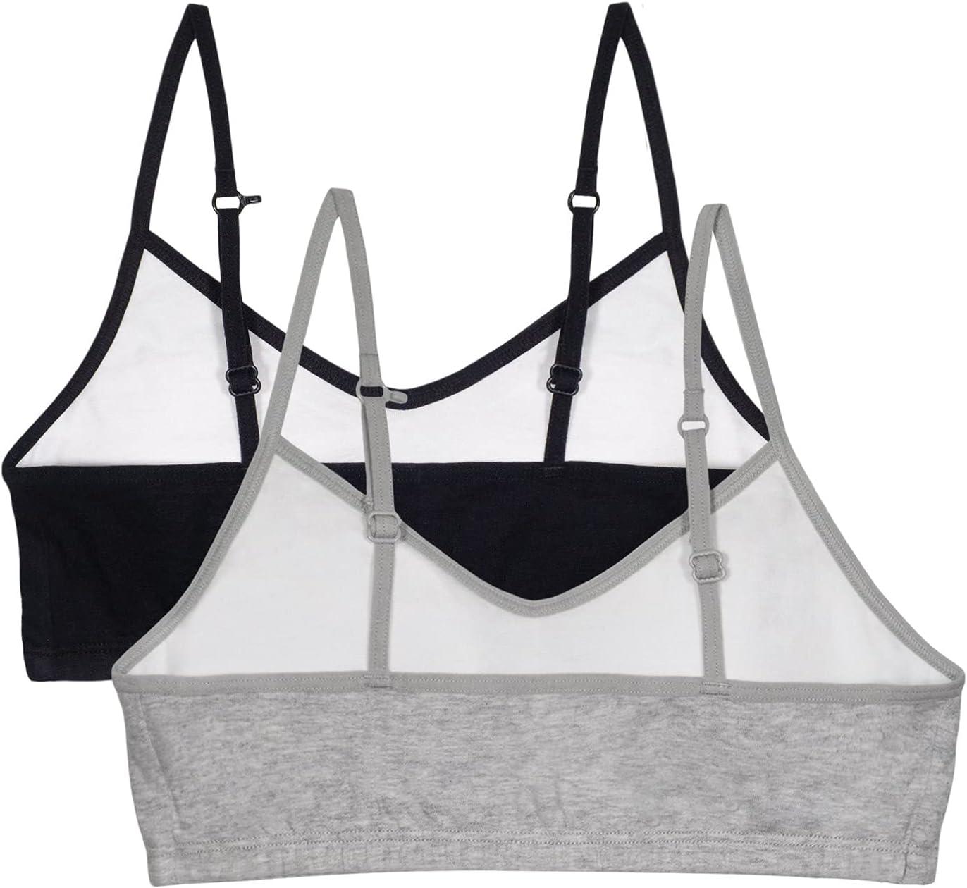 Fruit of the Loom Girls’ Bra with Removable Cookies, 2-Pack(Black Hue/Heather Grey)