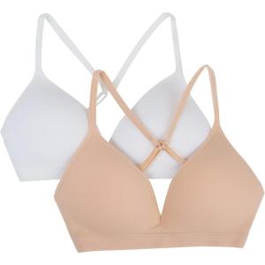 Fruit of the Loom Girls’ Bra with Removable Cookies, 2-Pack(White/Soft Blue)