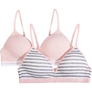 Fruit of the Loom Girls’ Bra with Removable Cookies, 2-Pack(Med Stripe/White)