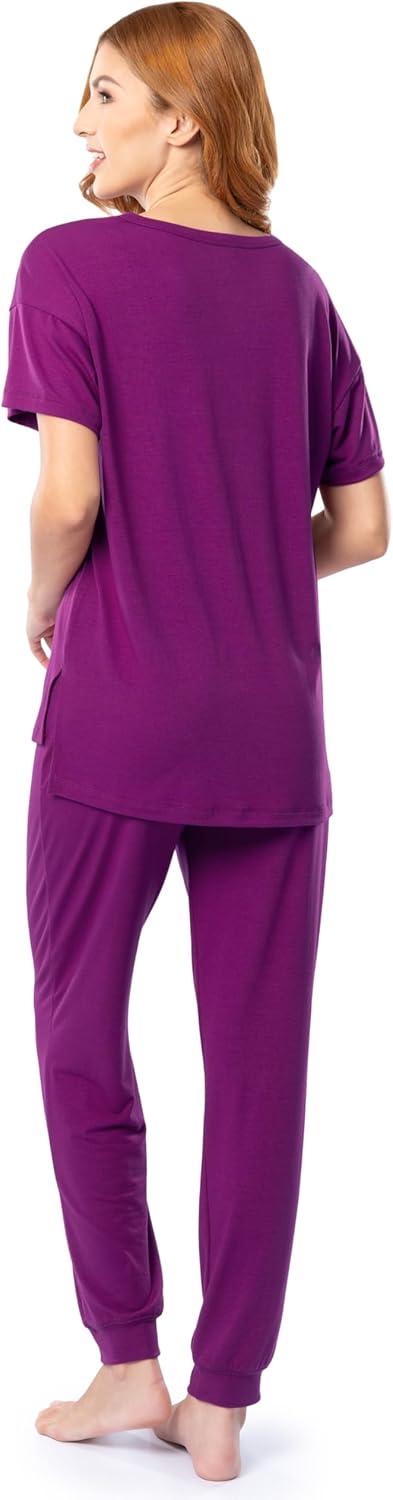 Fruit of the Loom womens Breathable Short Sleeve Top and Jogger Pant Sleep Pajama Set(Boysenberry)