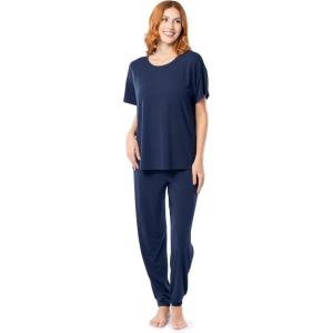 Fruit of the Loom womens Breathable Short Sleeve Top and Jogger Pant Sleep Pajama Set(Midnight Blue)
